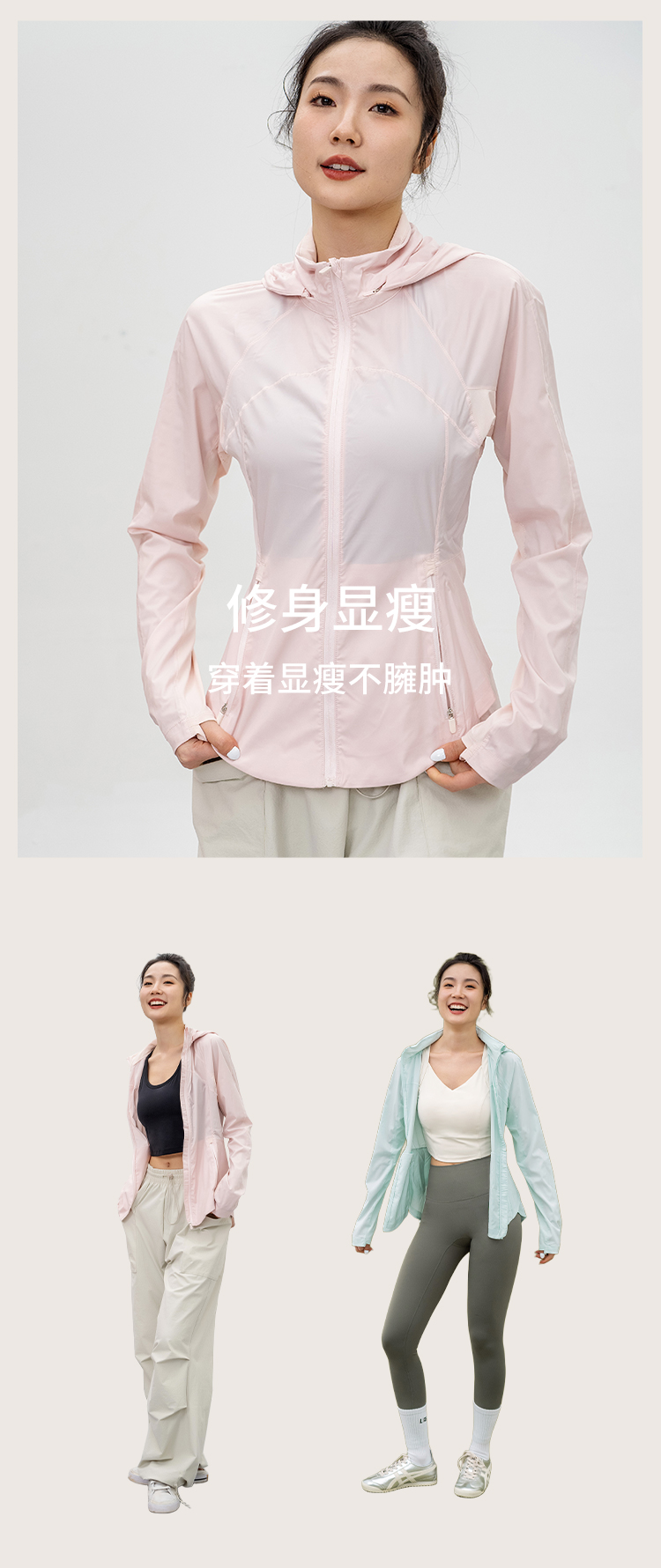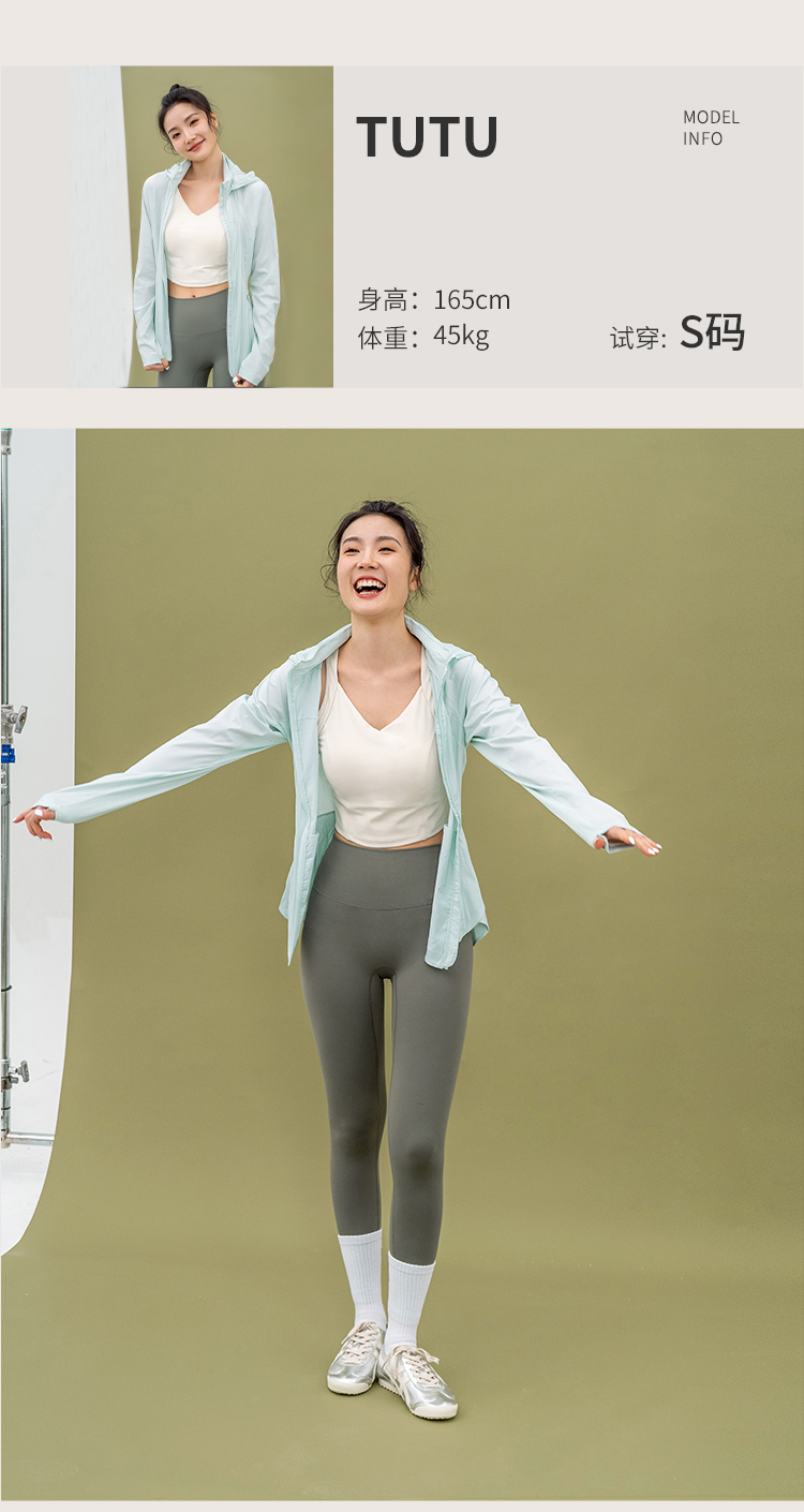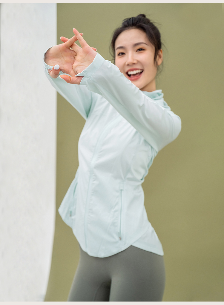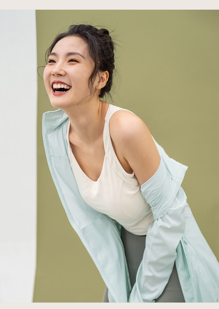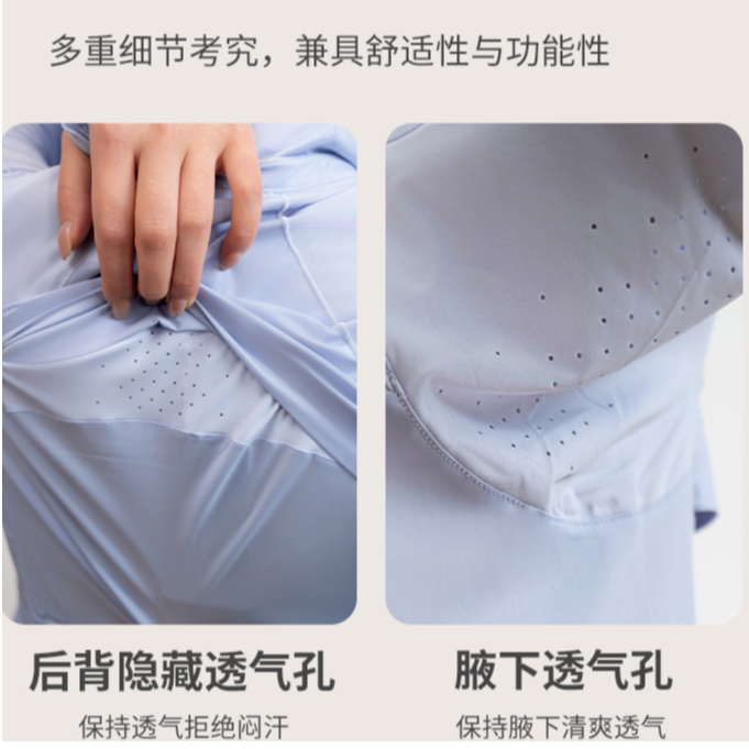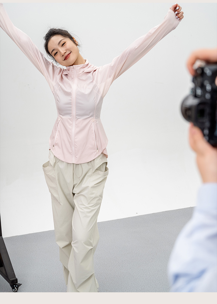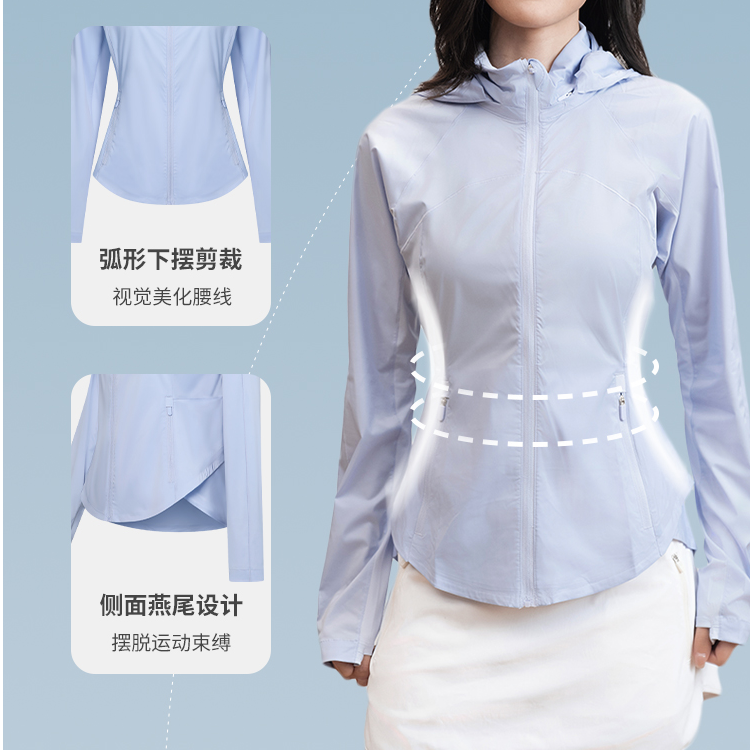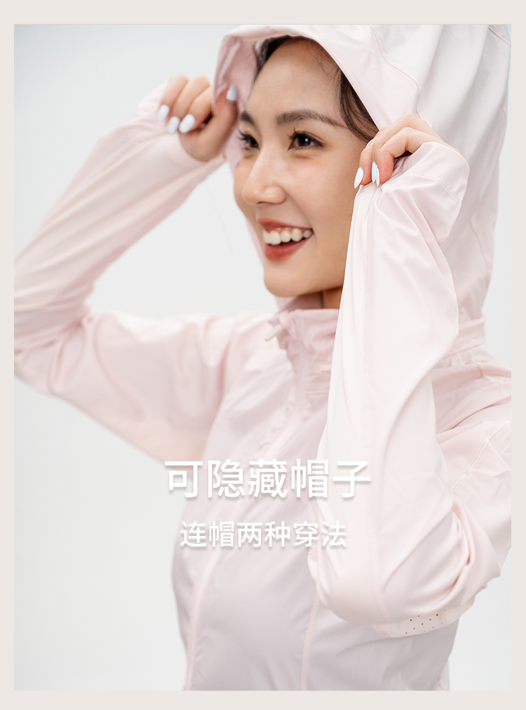 L RECNAVA UPF50+轻薄原纱凉感防晒衣 腋下带透气孔 下摆弧形修身显瘦 隐藏拉链口袋 连帽帽子可收纳