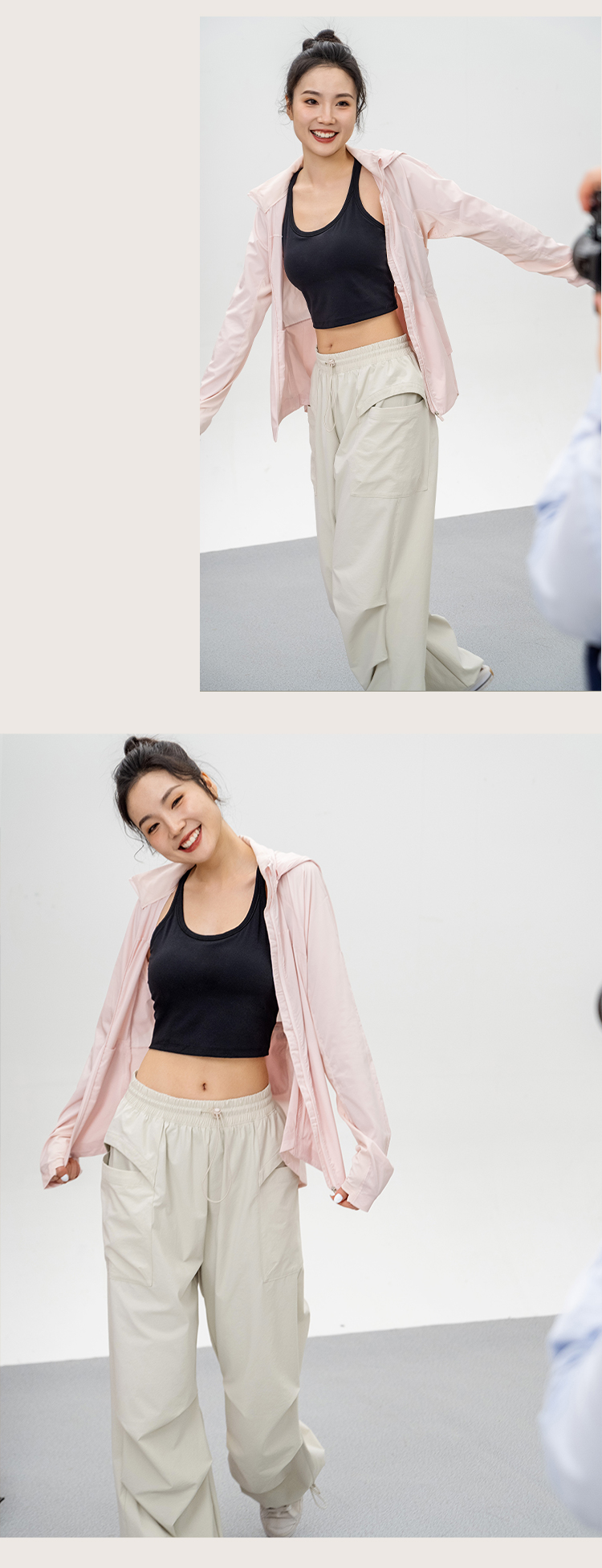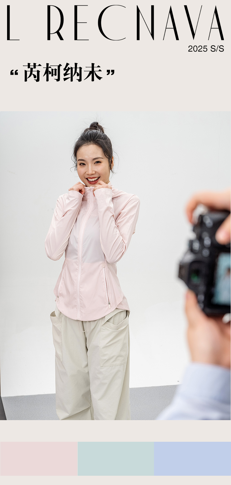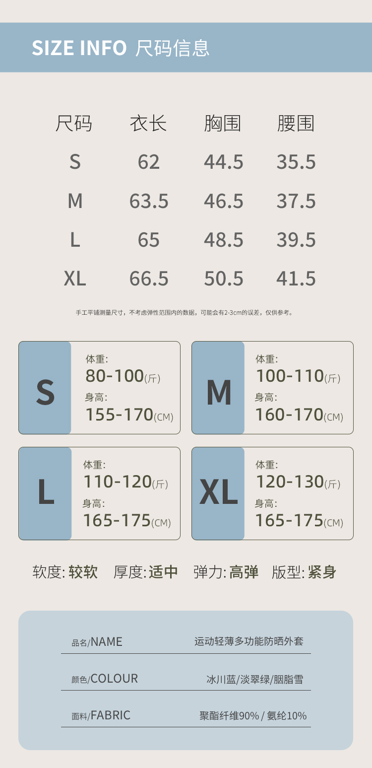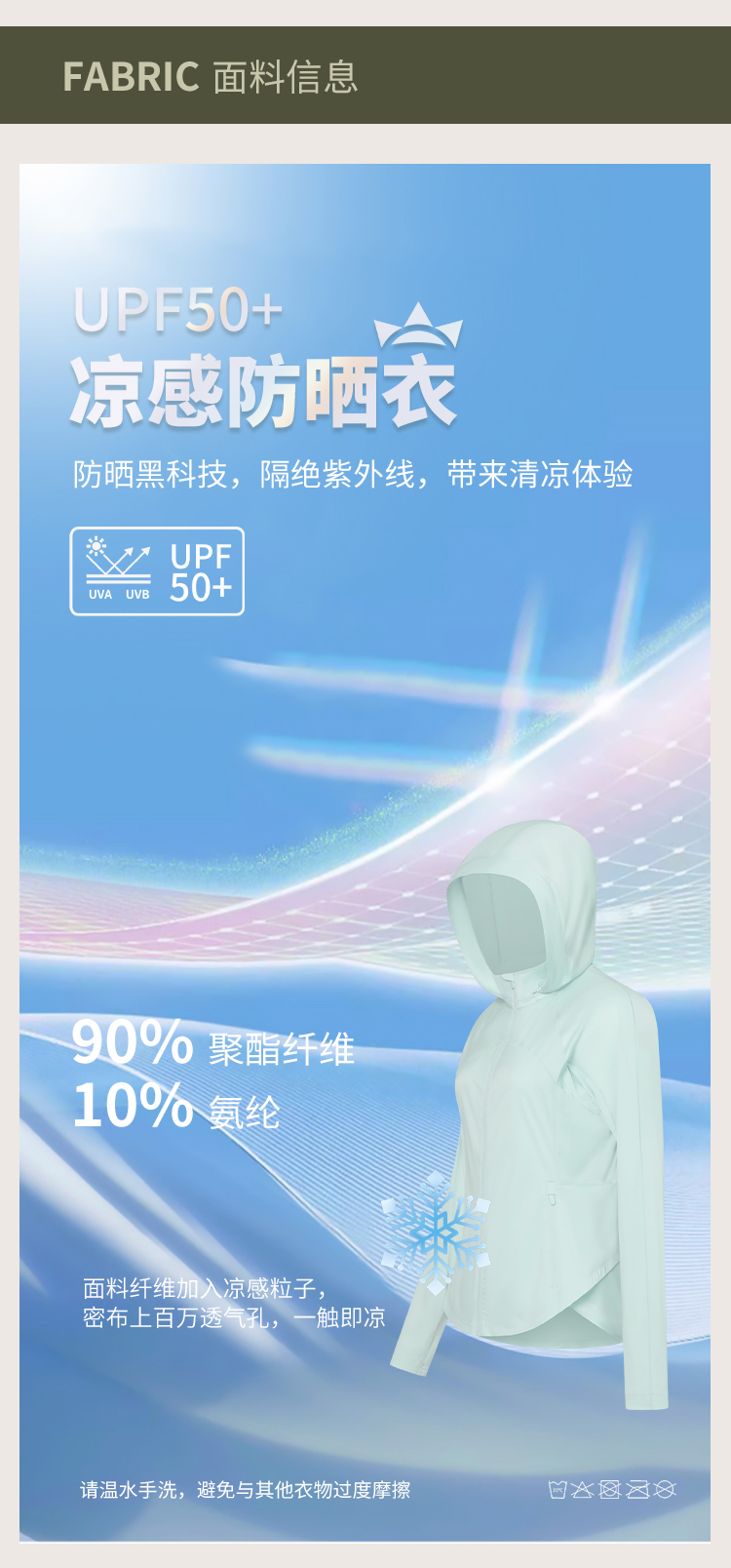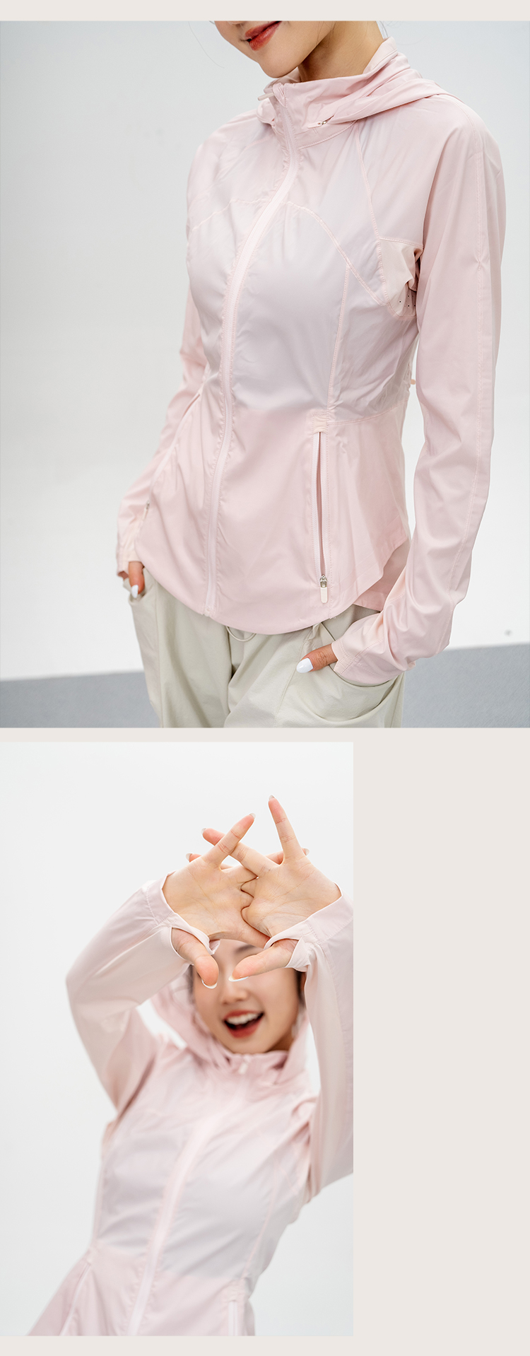 L RECNAVA UPF50+轻薄原纱凉感防晒衣 腋下带透气孔 下摆弧形修身显瘦 隐藏拉链口袋 连帽帽子可收纳