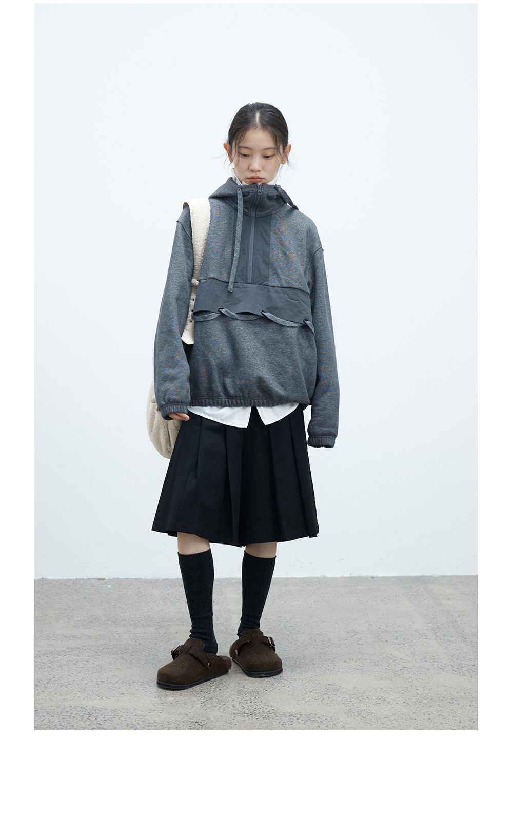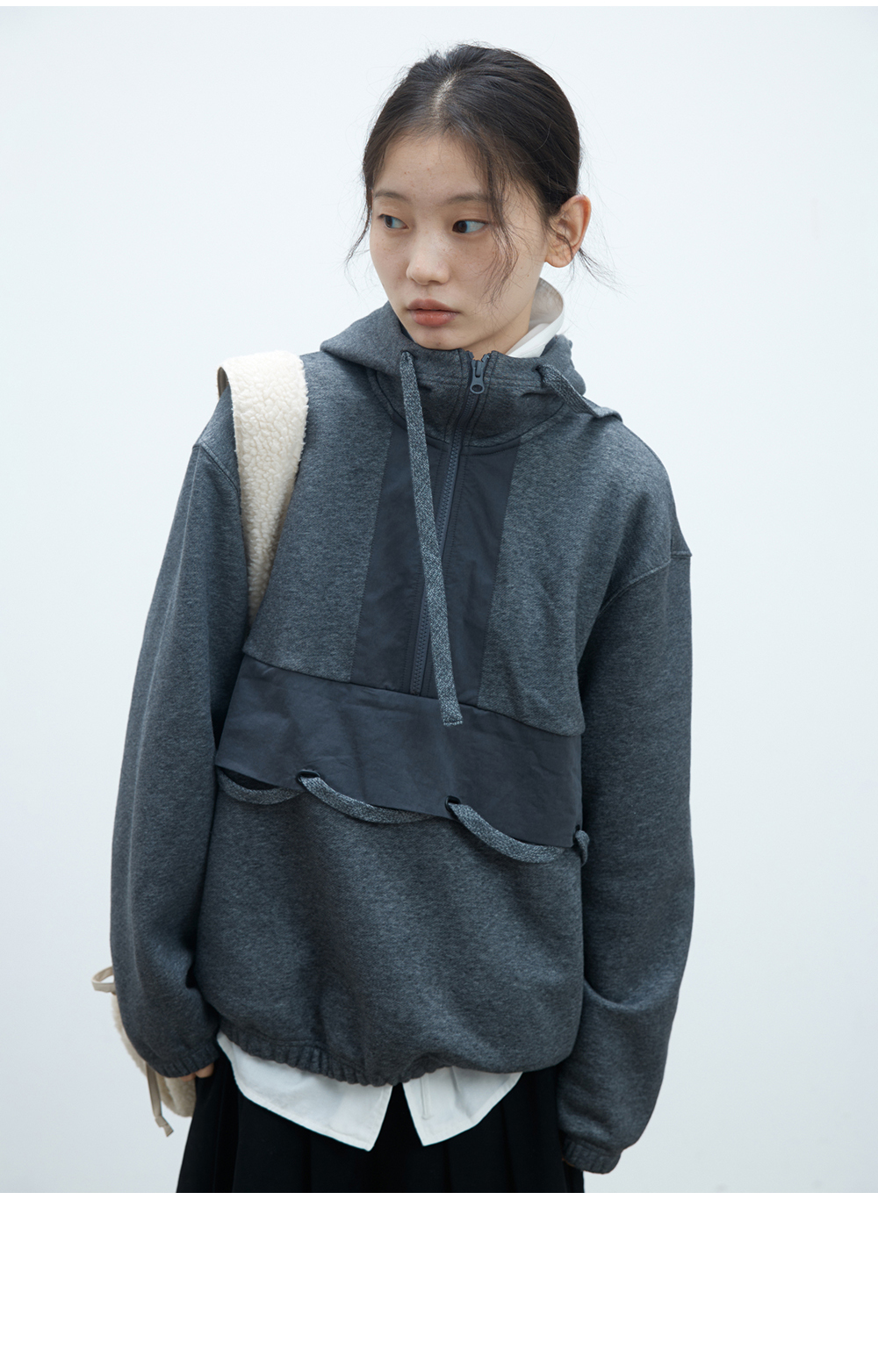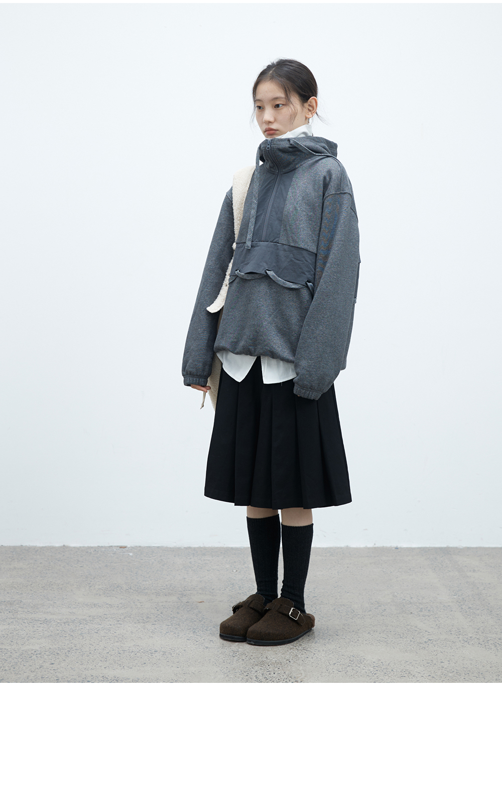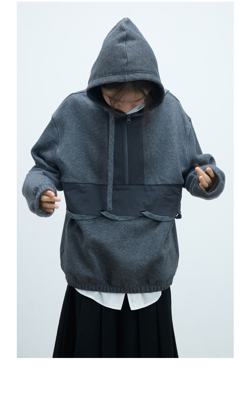 步履不停/4D15082C/套头拼接设计灰色白色卫衣外套