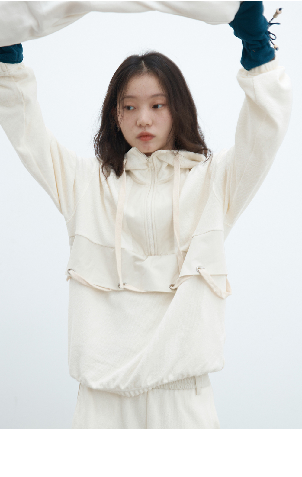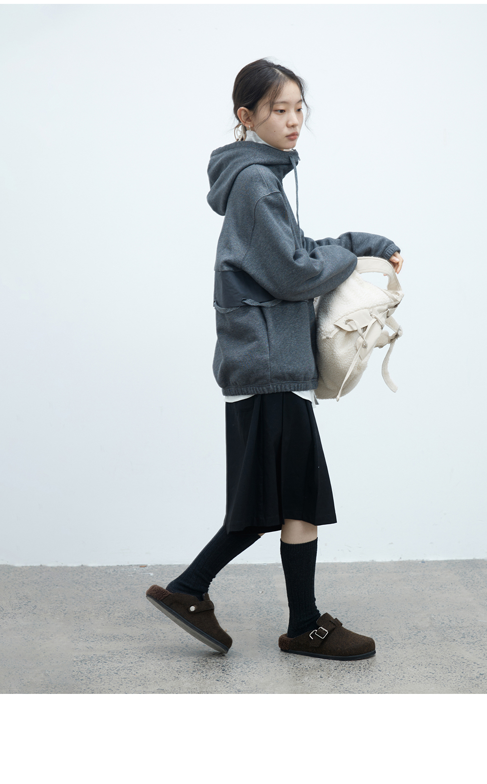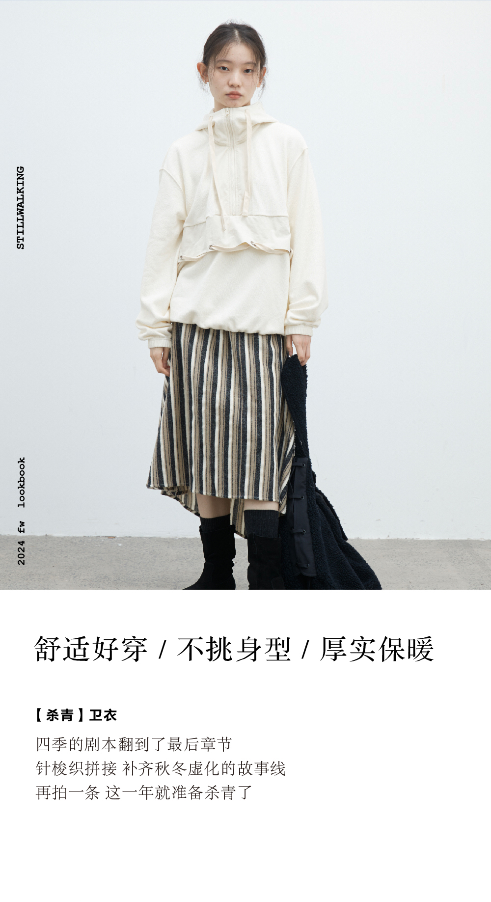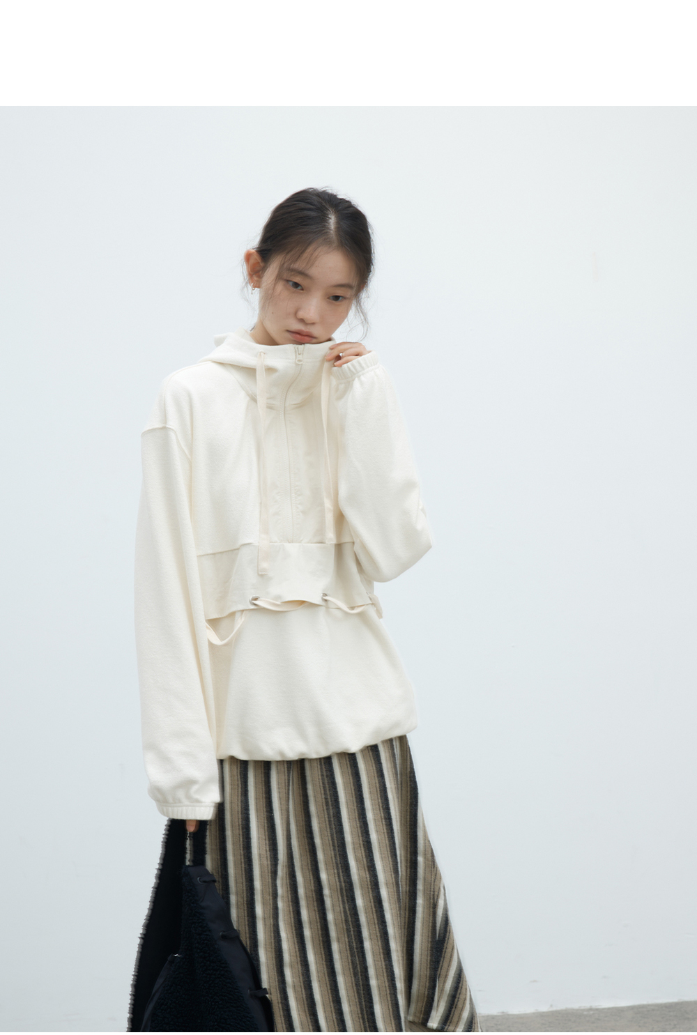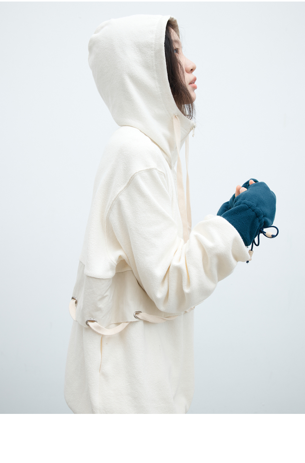 步履不停/4D15082C/套头拼接设计灰色白色卫衣外套