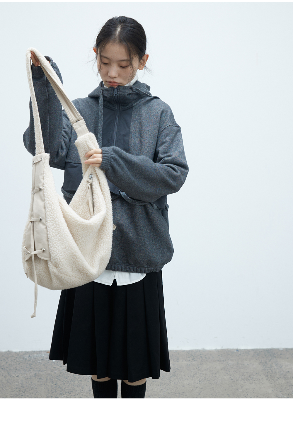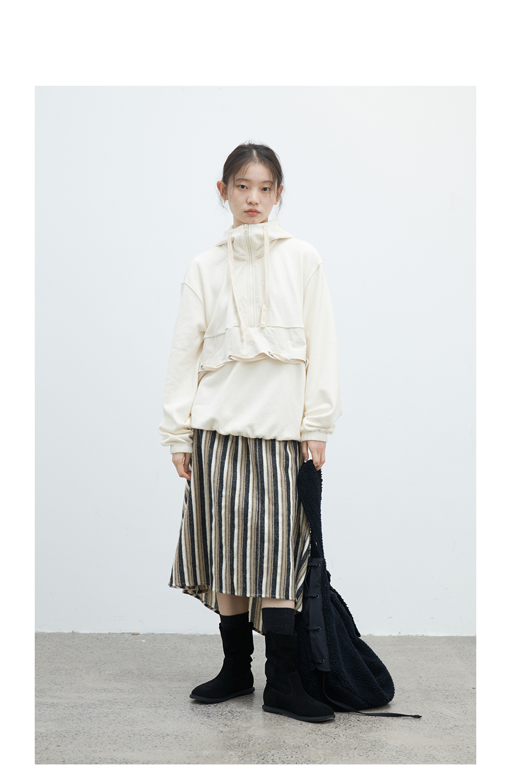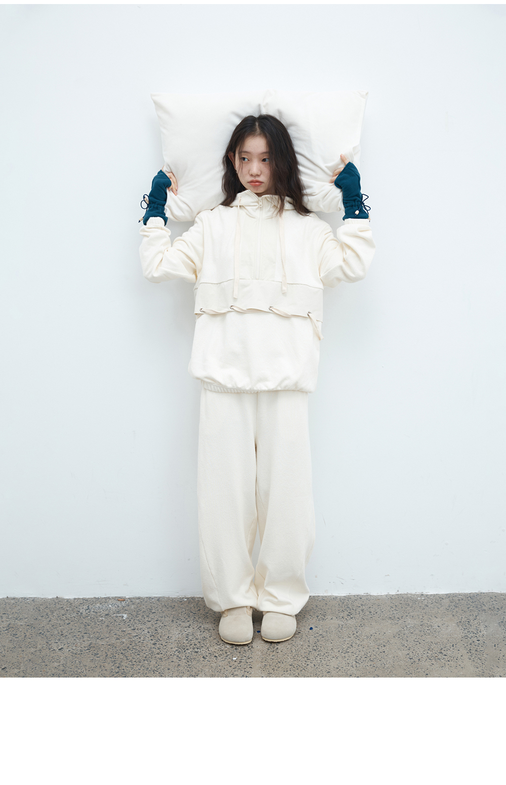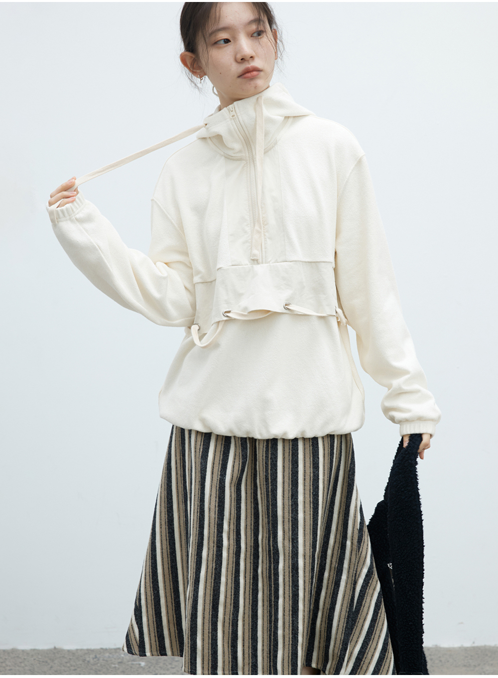 步履不停/4D15082C/套头拼接设计灰色白色卫衣外套