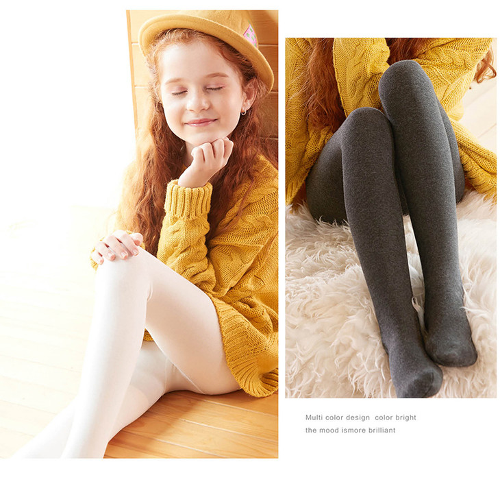 儿童连裤袜加绒加厚秋冬自发热保暖裤宝宝打底裤女童白色舞蹈袜子