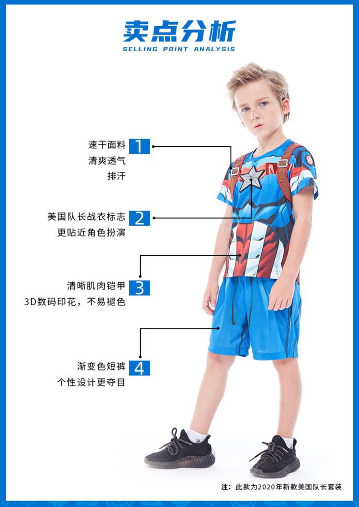 漫威美国队长正义英雄套装TP-2001-03儿童衣服服装新款童装