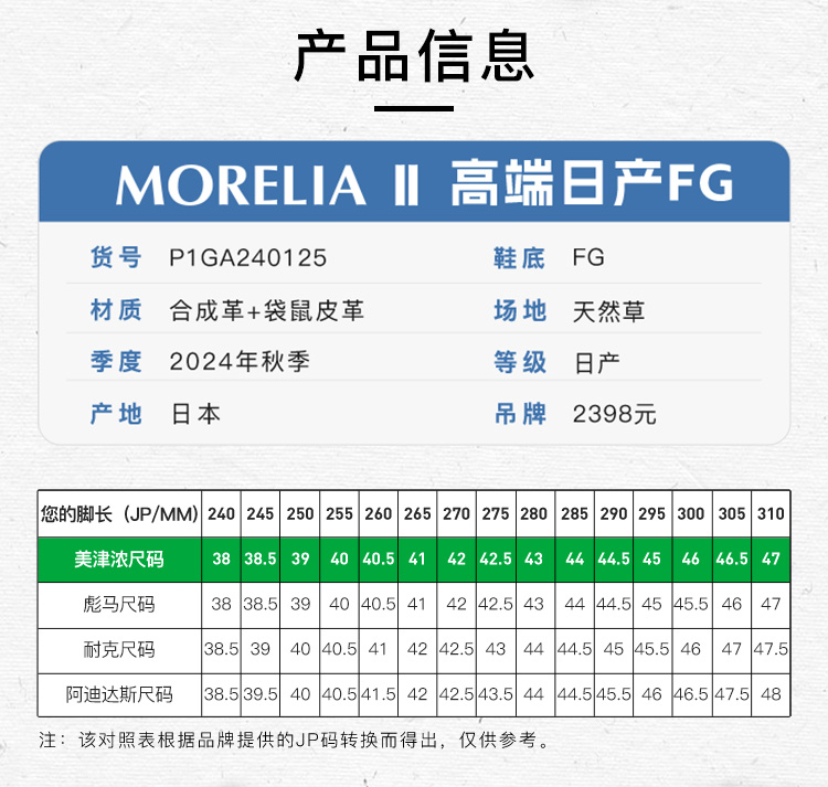 小李子Mizuno美津浓莫雷拉MORELIA 2高端日产FG长钉袋鼠皮成人足球鞋男