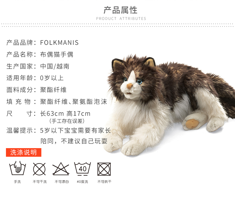 Folkmanis Puppets布偶猫玩具/2558玩偶毛绒玩具礼物