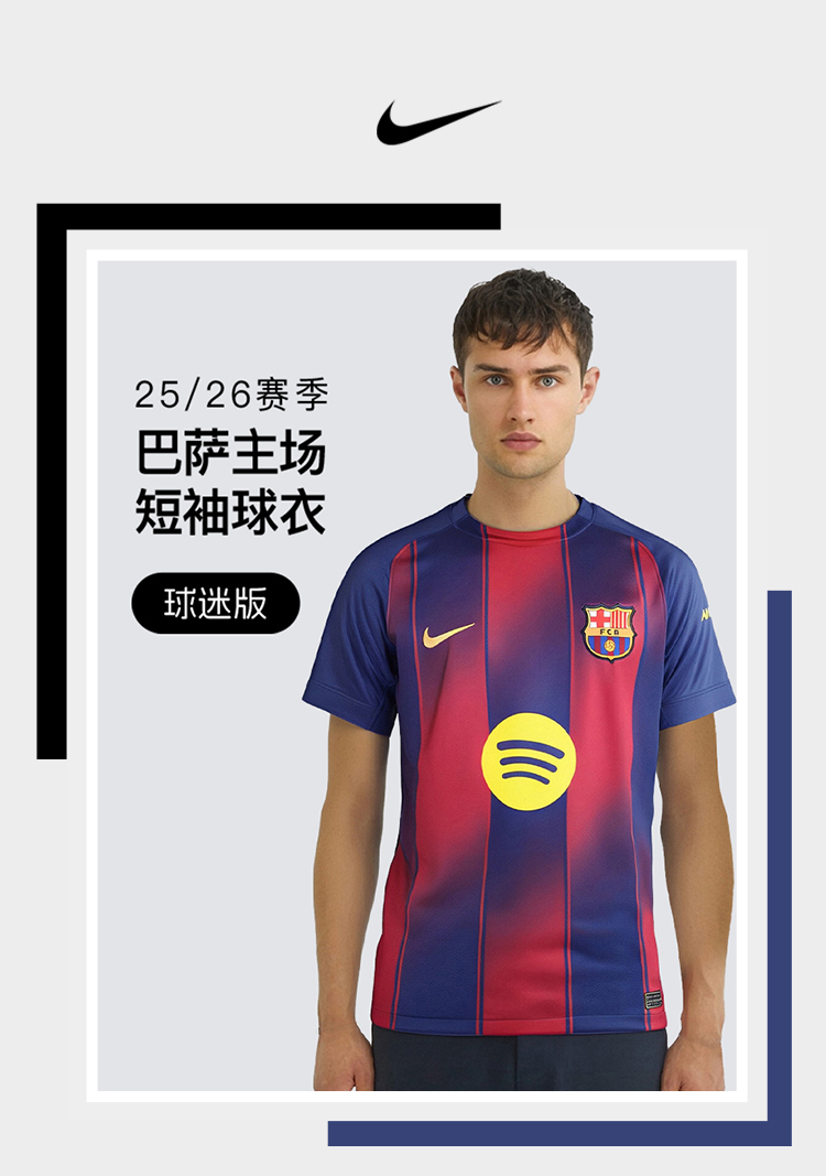 小李子NIKE耐克25-26赛季巴萨主场球迷版球衣成人T恤男HJ4590-456