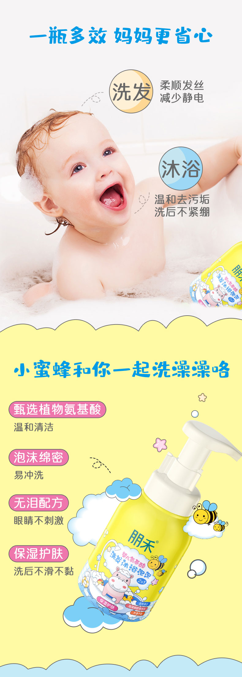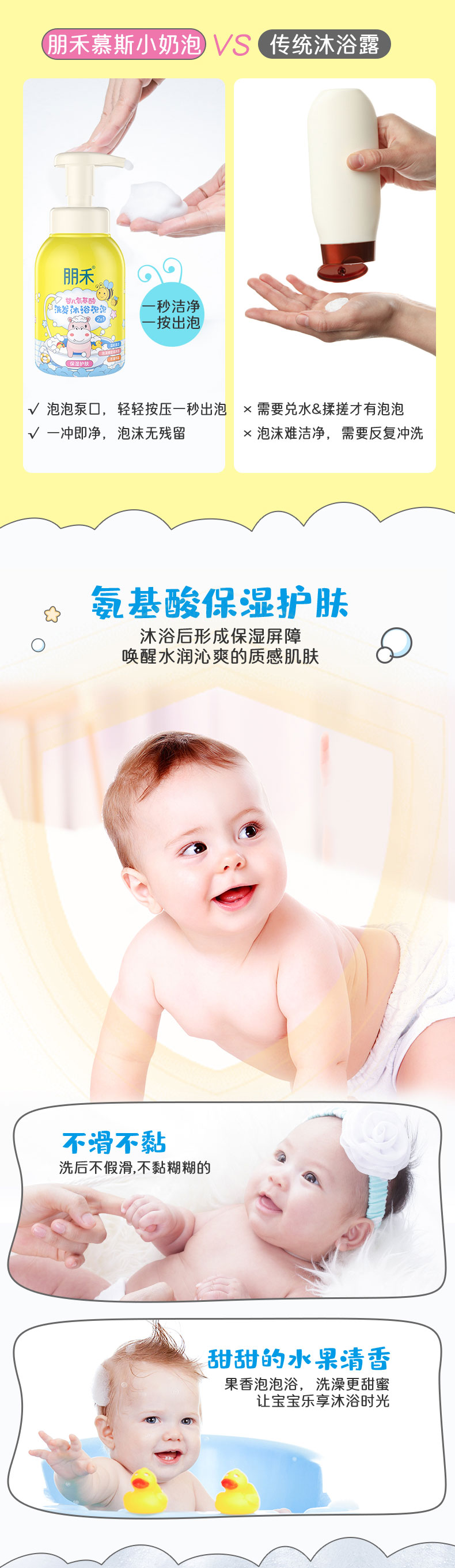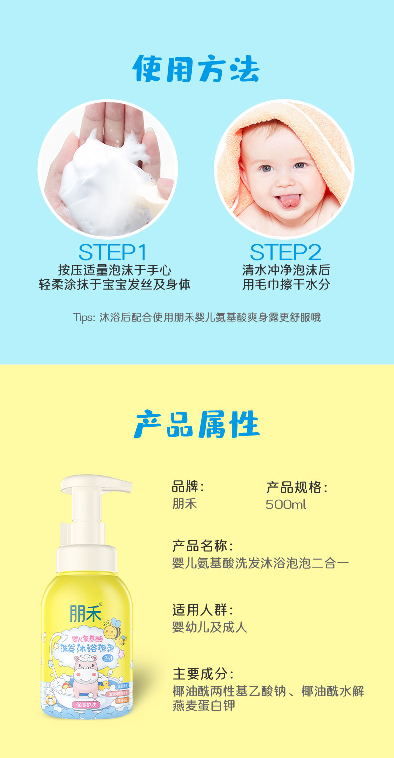 朋禾婴儿氨基酸洗发沐浴泡泡500ml