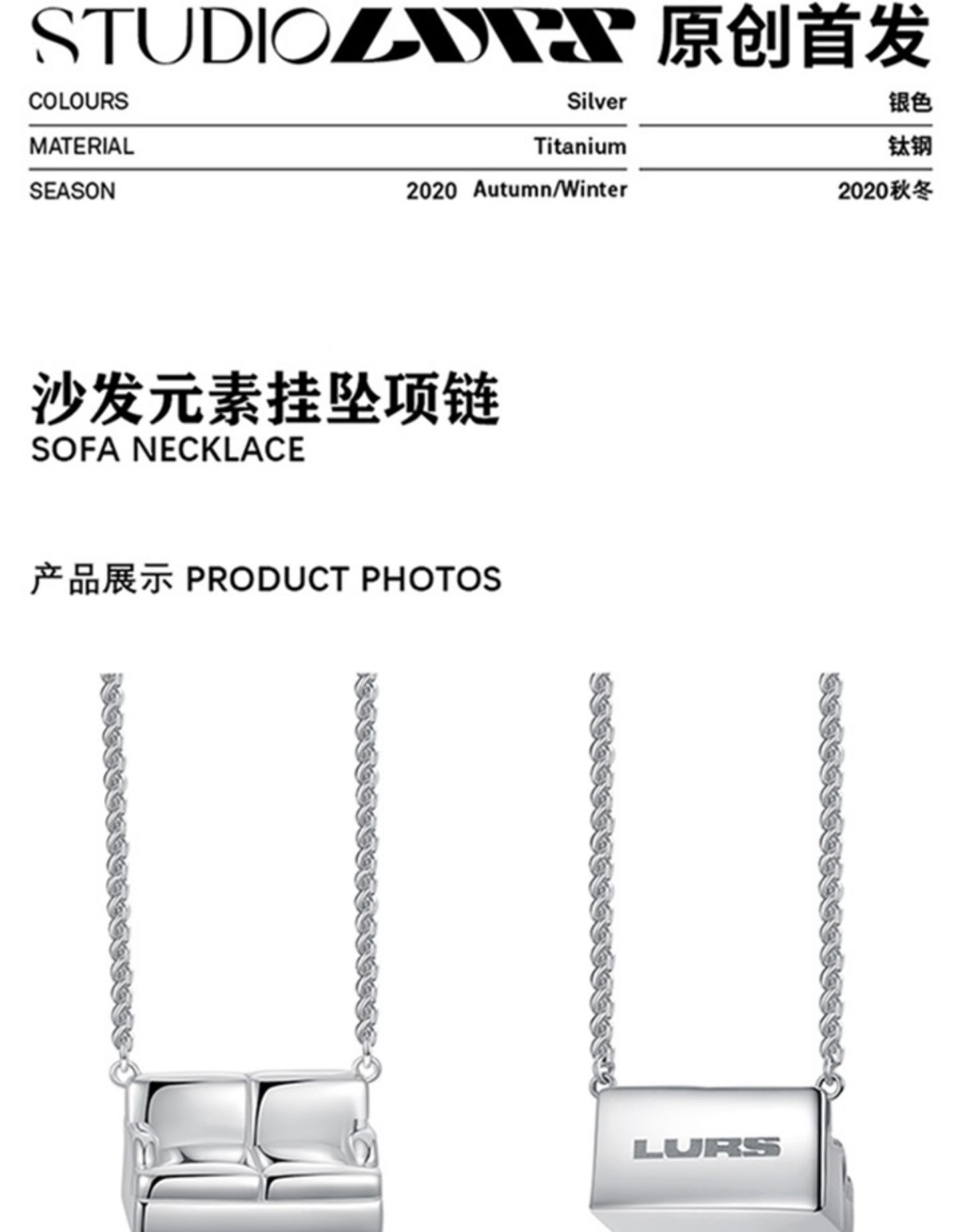 LURS原创设计国潮酷玩元素沙发吊坠简约百搭项链男项链女