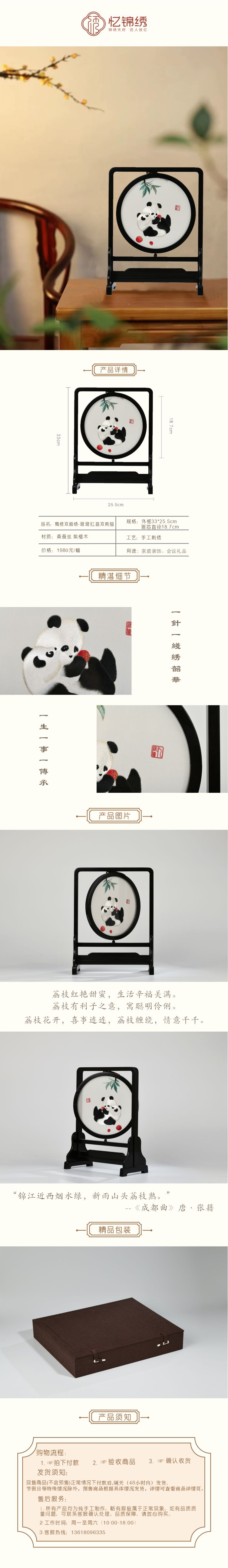 蜀绣双面绣-滚滚红荔双熊猫