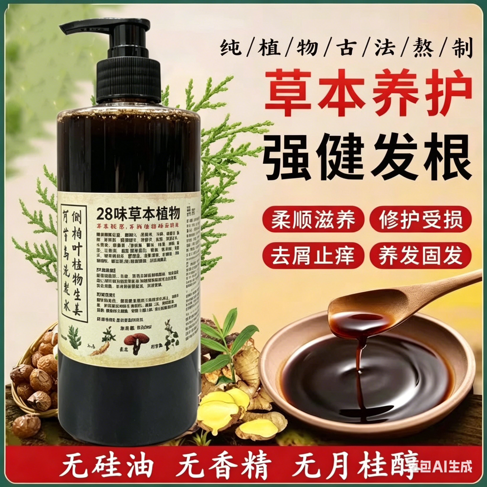 【九九】古法熬制侧柏叶皂角生姜植物洗发水无硅油控油去屑 2瓶装 500ml/瓶