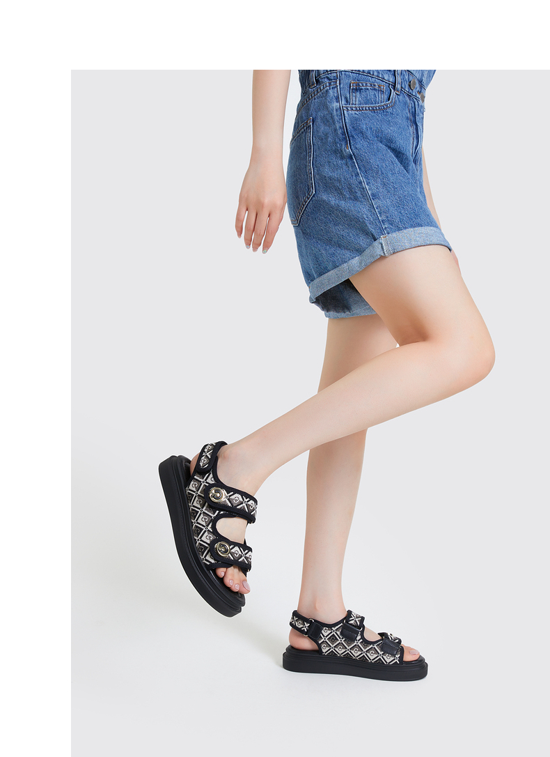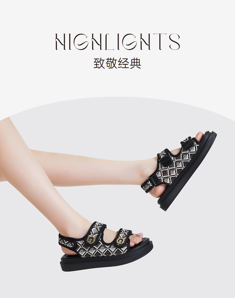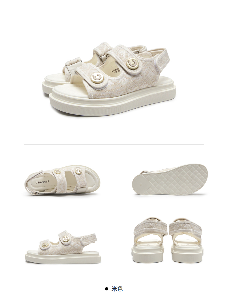 千百度女鞋夏季休闲凉鞋厚底度假沙滩凉鞋时尚松糕底鞋子A23332202