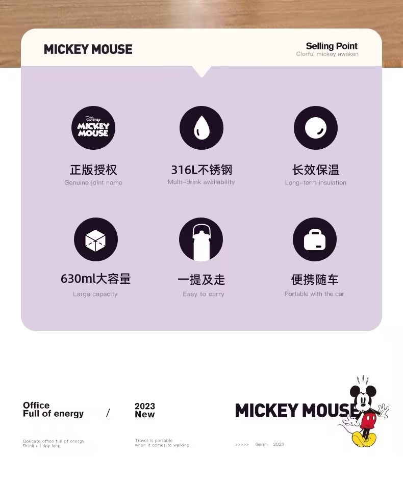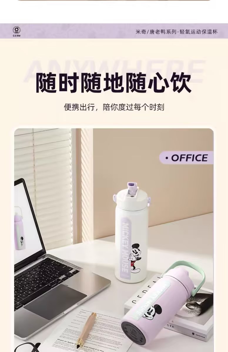 GERM迪士尼保温杯女生2023新款大容量316不锈钢运动便携吸管水壶