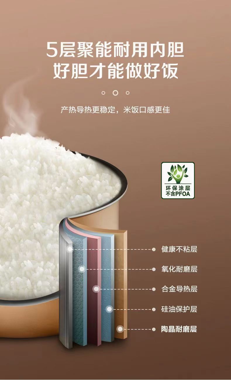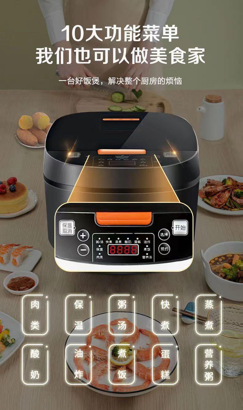 【智能魔盒,润口可口】先科5L电饭煲,大容量智能家用锅;电子智能控温,恰到好处的可口米饭,满满幸福感!