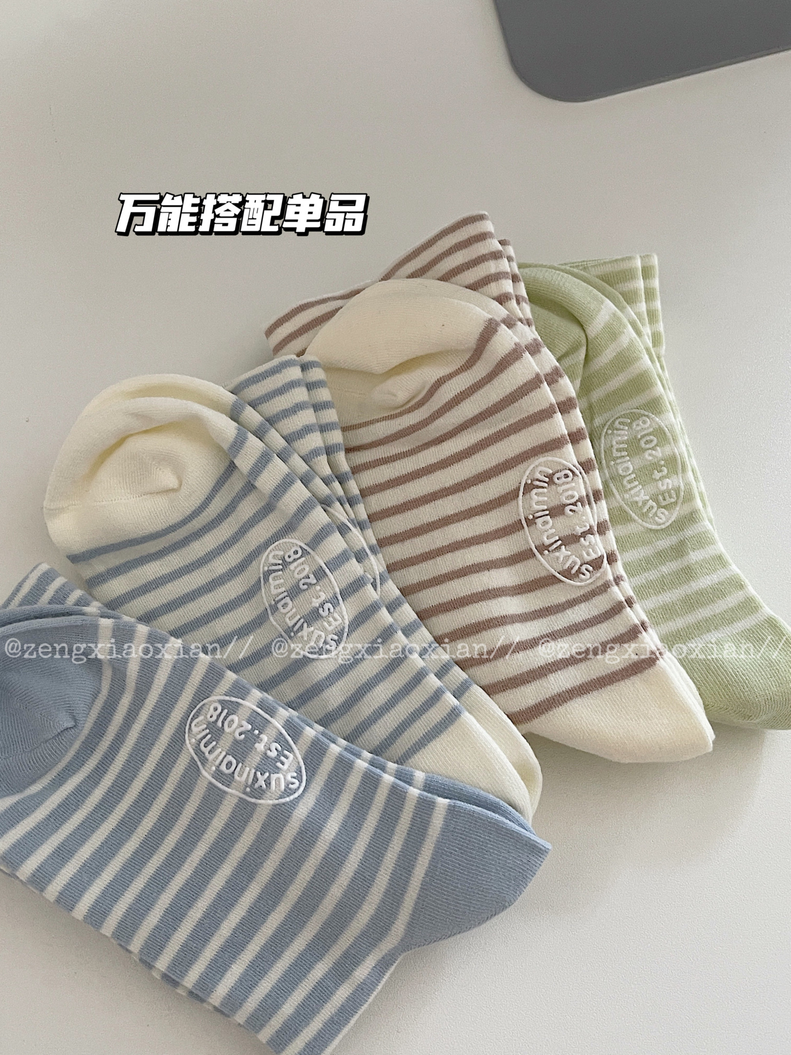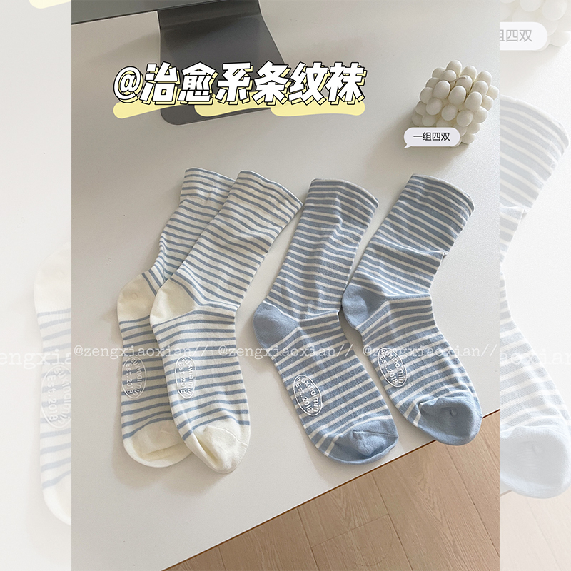 <曾小咸推荐> 治愈系条纹中筒袜