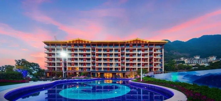 碧桂园金叶子半山温泉公寓靠近白水寨景区,距景区大门口仅4.6公里,紧靠省道,交通便利。内部设计是配合周边大自然生态以“绿色环保”为主要构思元素,格调简单而高雅舒适,强调休闲、舒适的度假氛围。