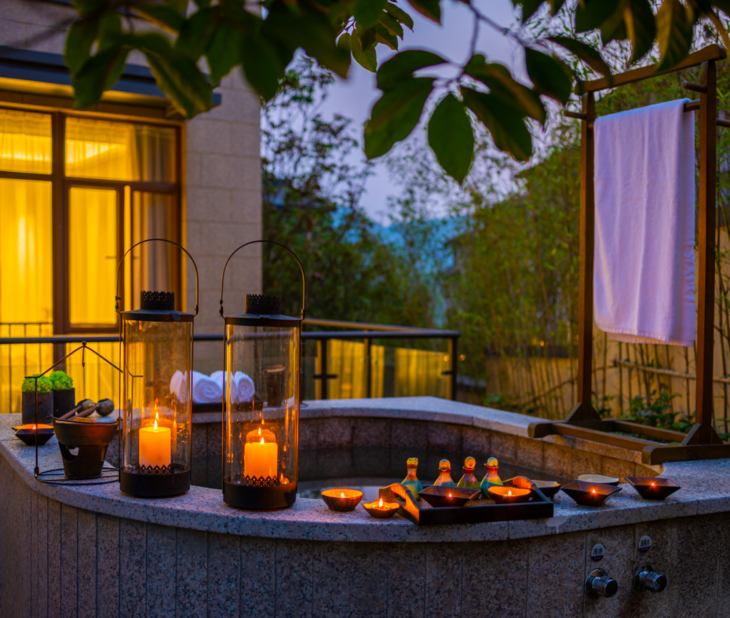 1,双人自助早餐、单次公共温泉及水上乐园、私家泡池2池水