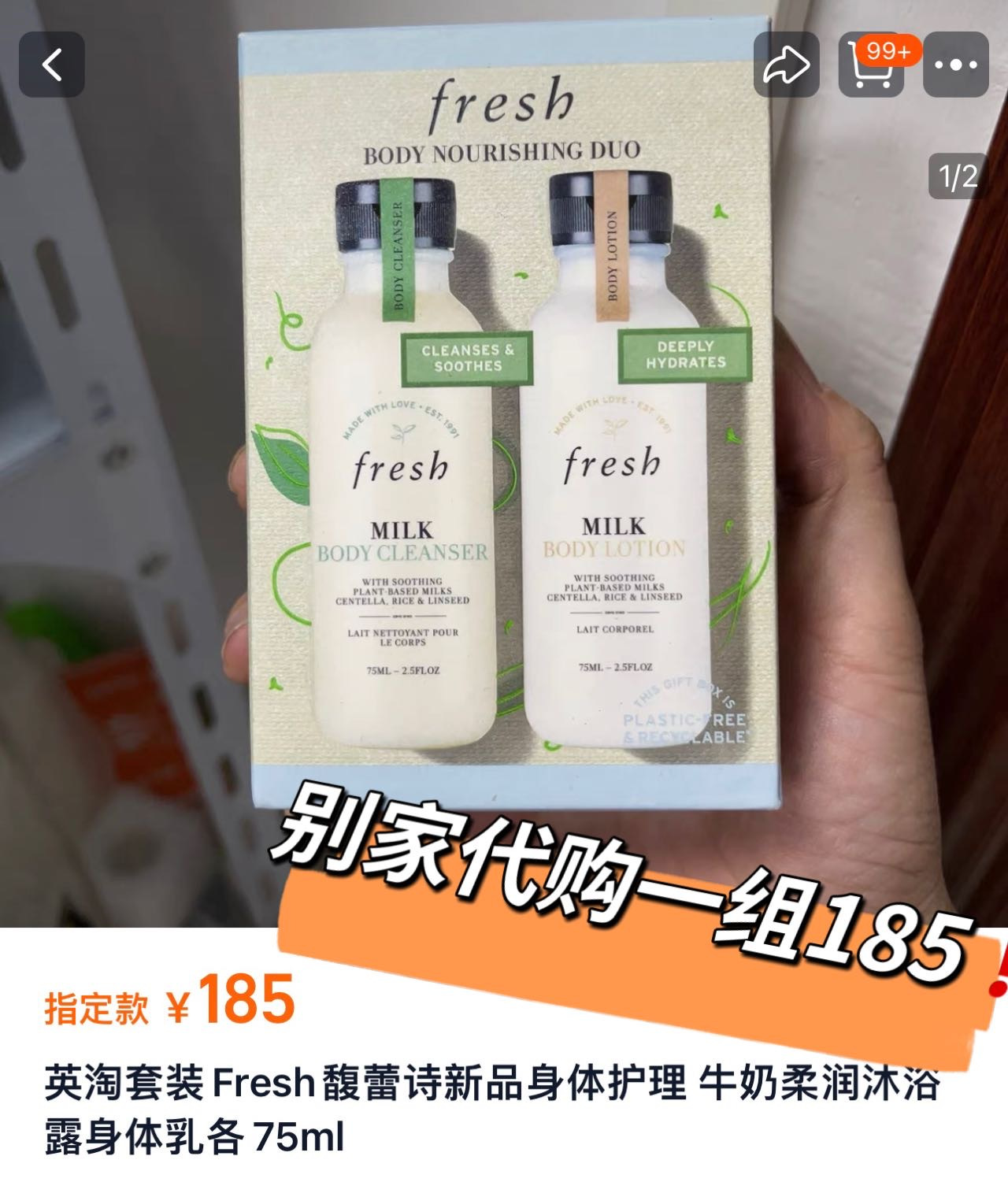 【1.4王炸割肉价】Fresh馥蕾诗牛奶沐浴露75ML+身体乳75ML(效期至25.2,国际五年到27年)
