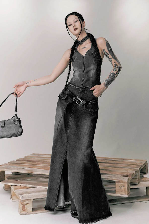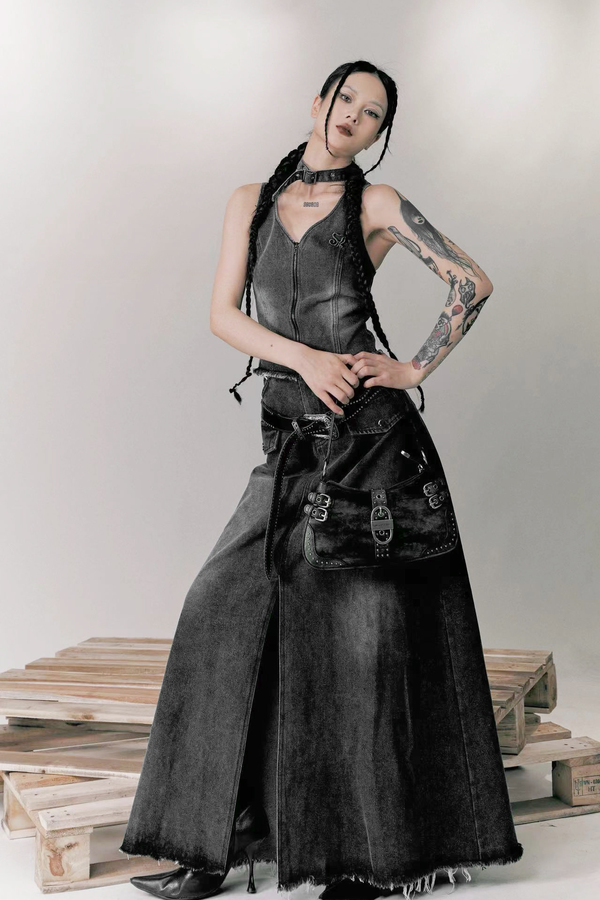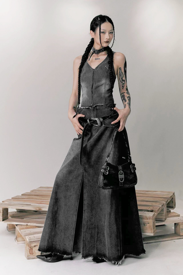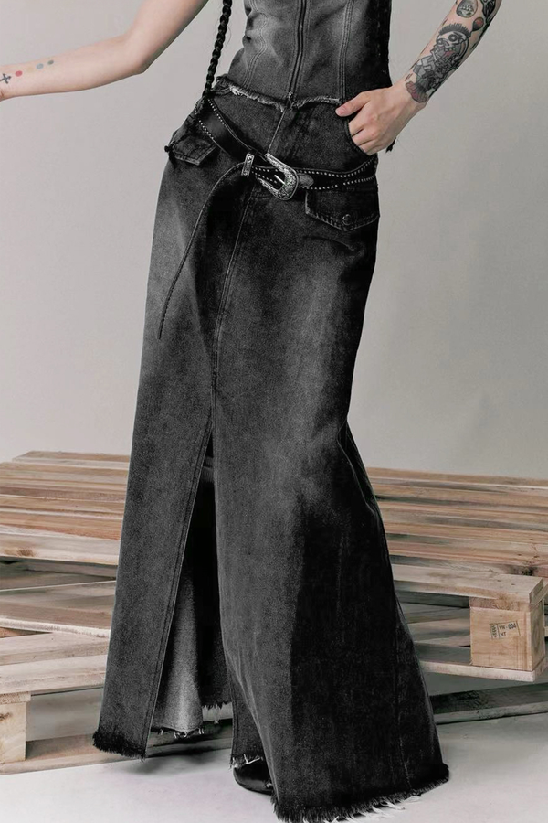 WHO KNOWS 美式复古辣妹牛仔半身长裙 20672