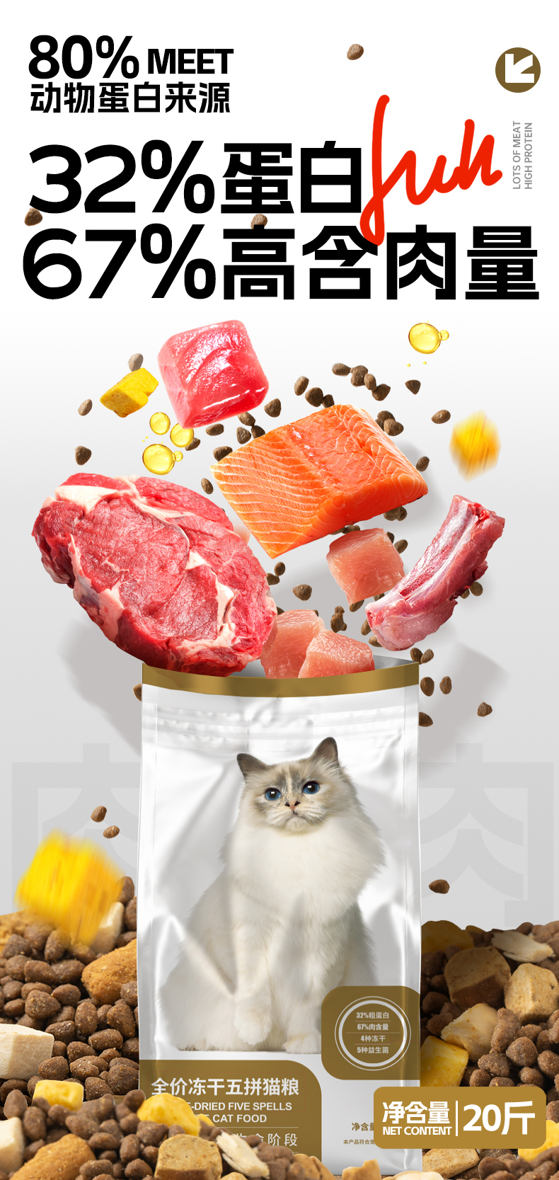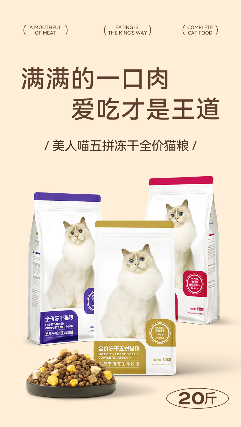 宠物先生 成幼猫粮20斤装冻干主粮10kg 鲜肉猫粮大袋实惠装