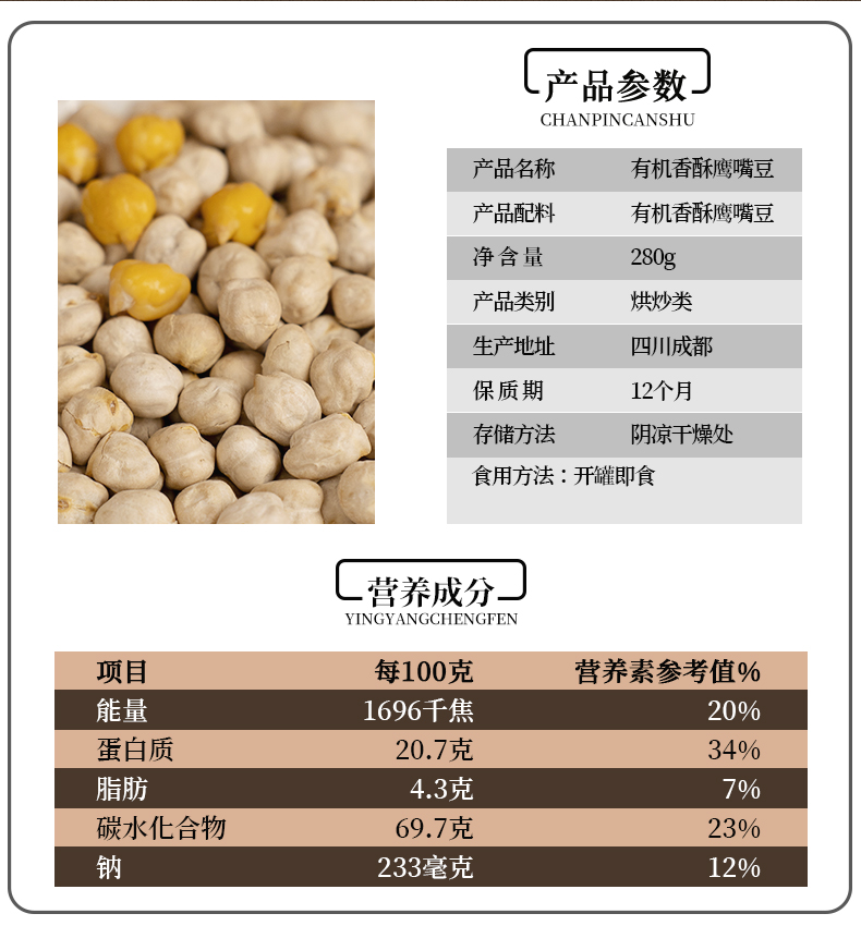有机香酥鹰嘴豆 即食杂粮豆烘焙零食280g/瓶【京东快递送货上门】