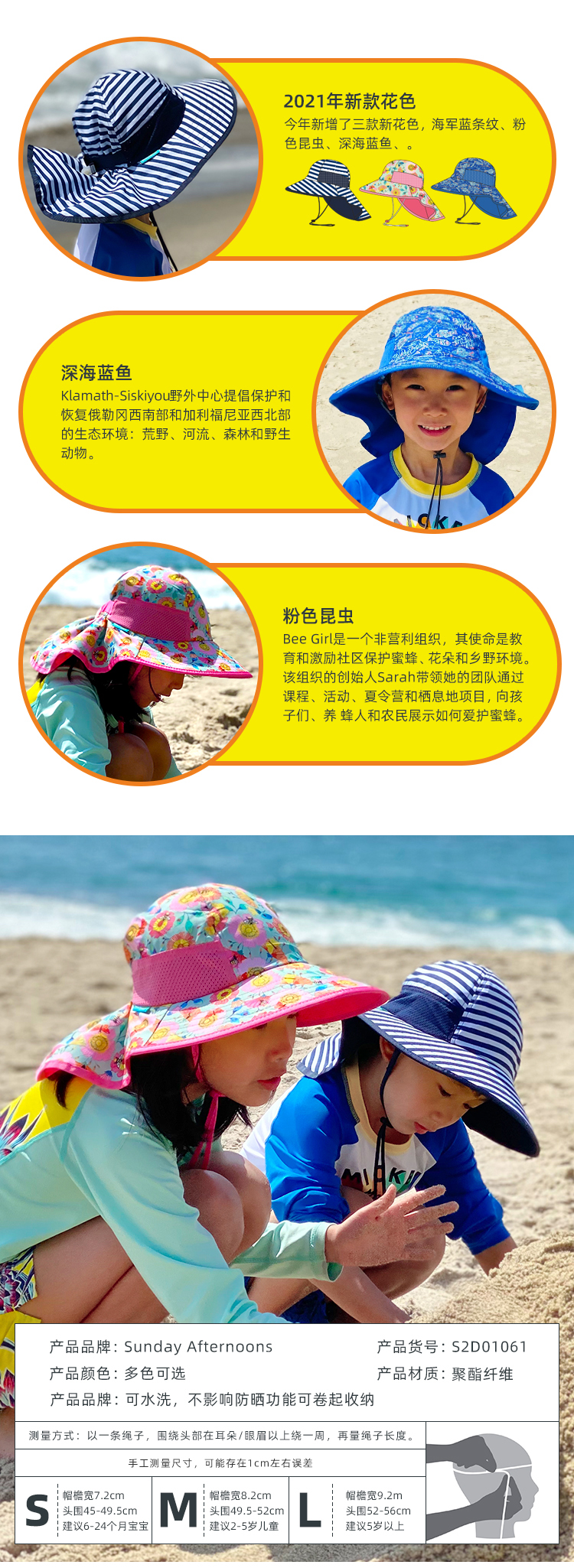 美国Sunday Afternoons婴儿防晒帽 男女宝宝沙滩遮阳帽儿童太阳帽