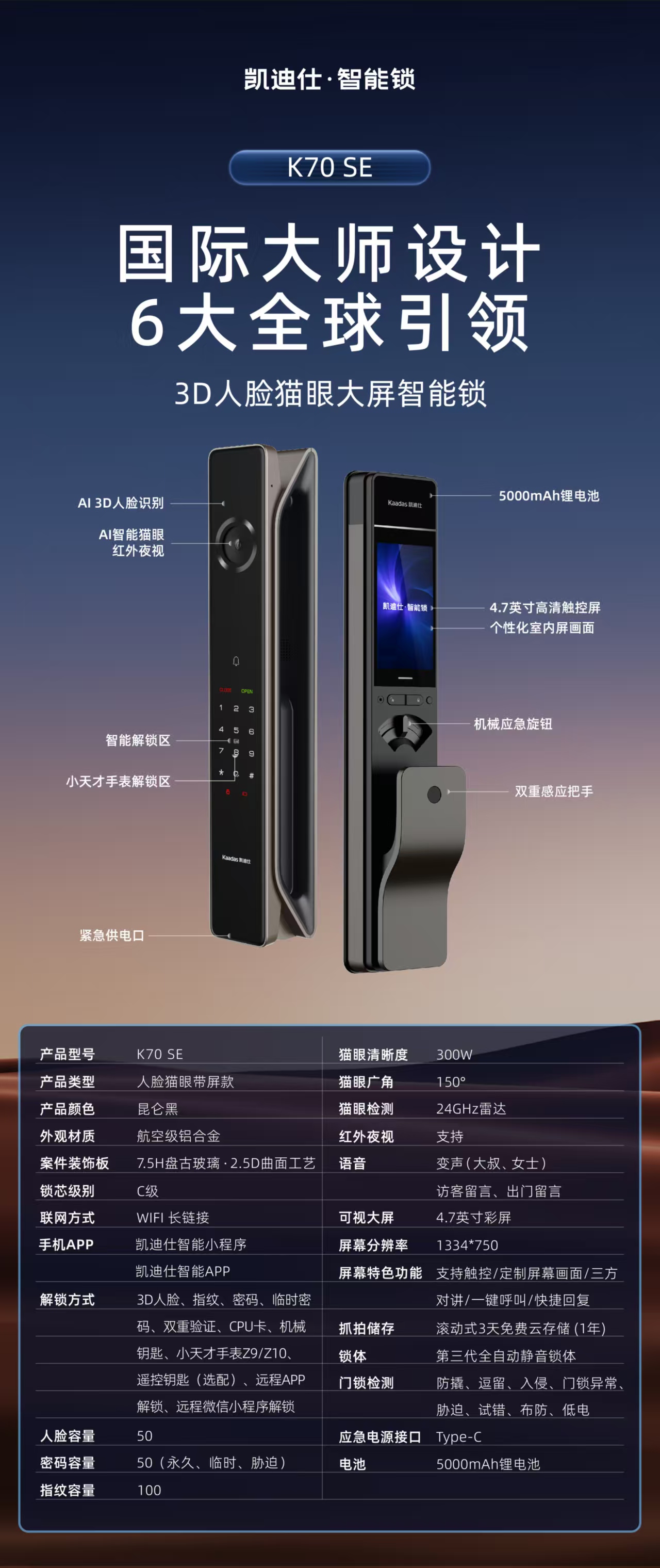 凯迪仕K70SE 智能门锁【春季焕新】行业旗舰机皇 - KDS