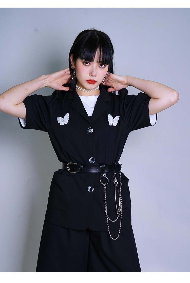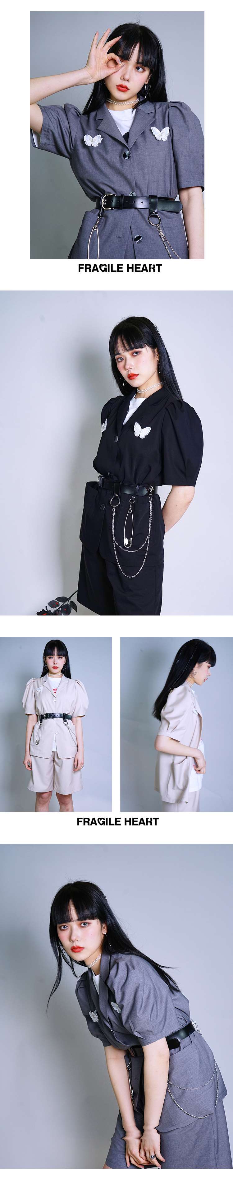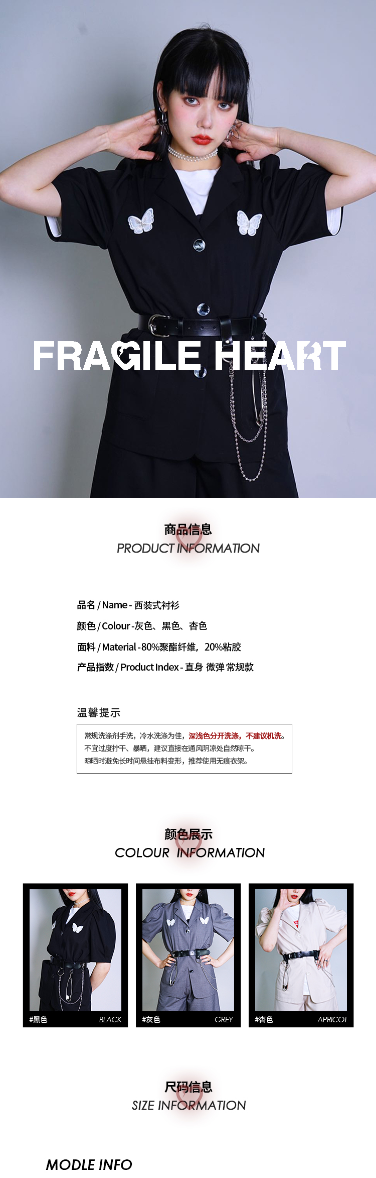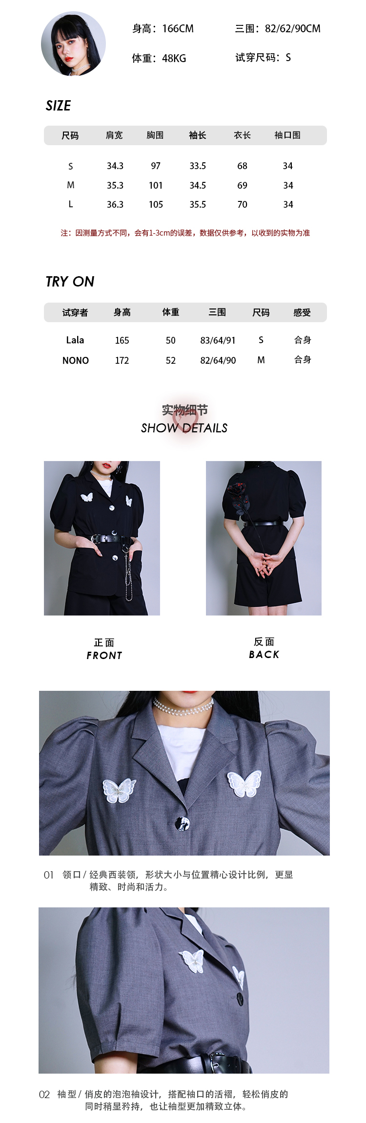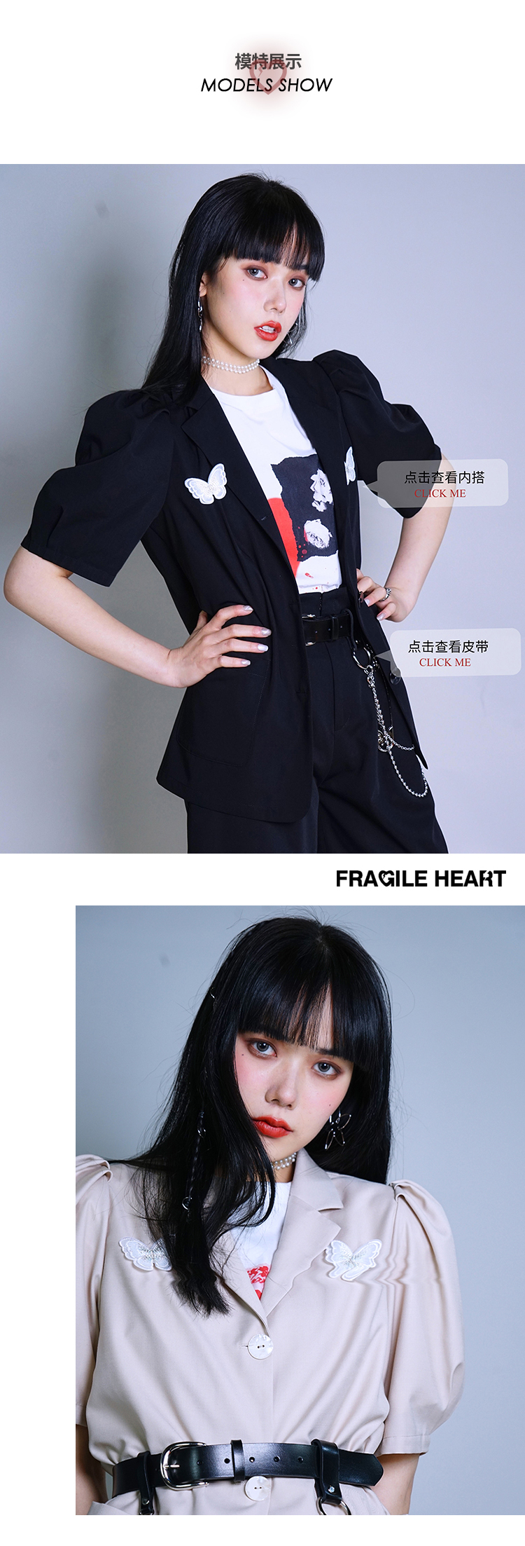 fragileheart易碎商店 蝴蝶刺绣短袖西装外套女春薄款泡泡袖上衣