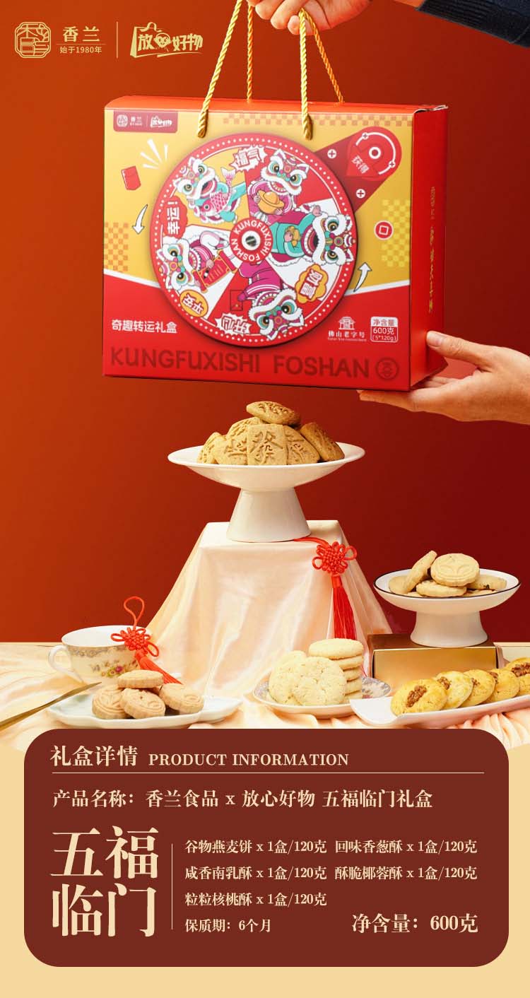五福临门奇趣转运礼盒600g 香兰食品X佛山传媒文旅联名礼