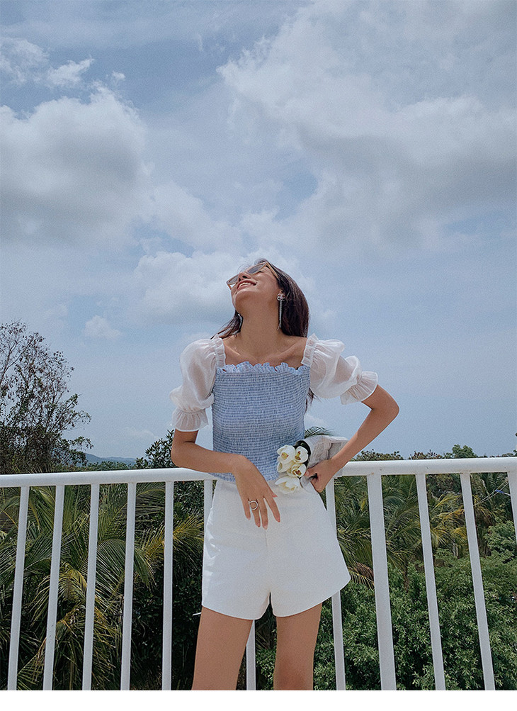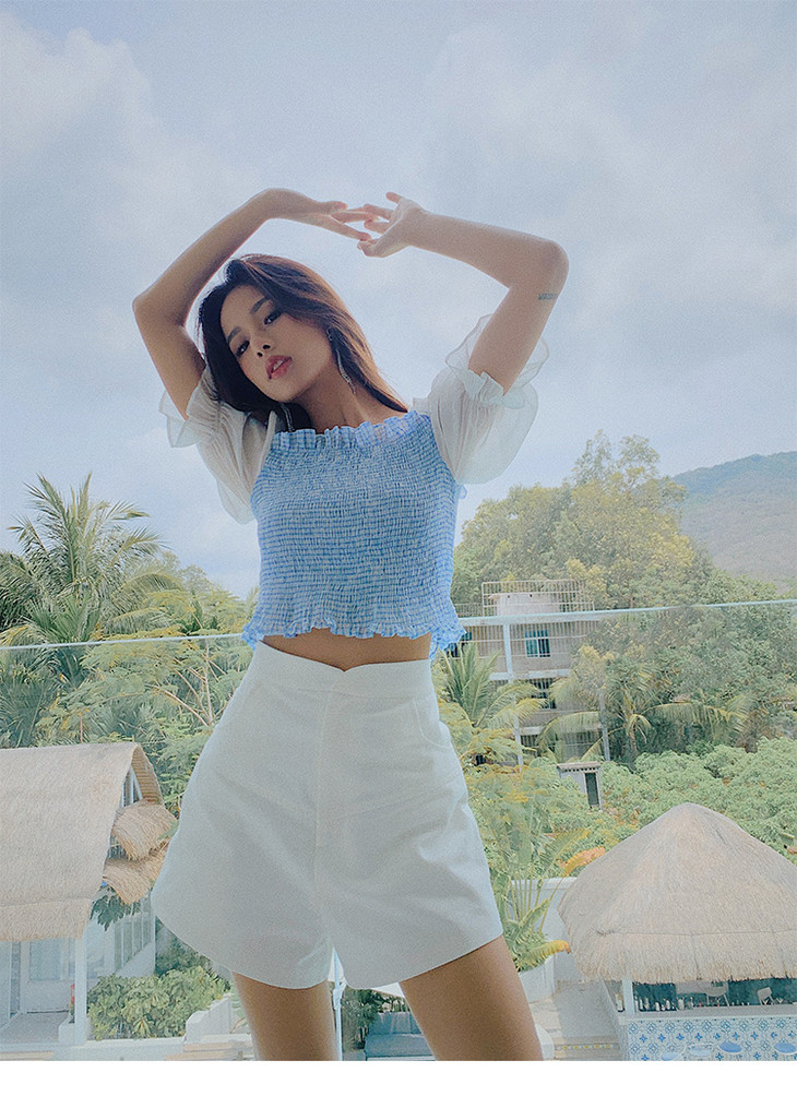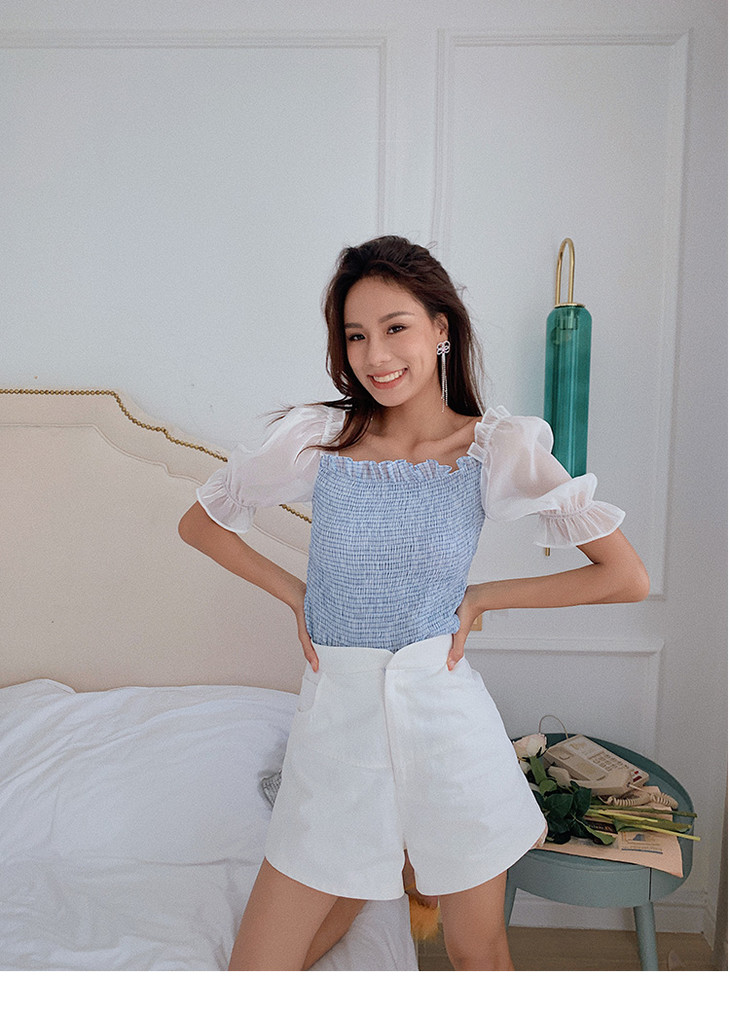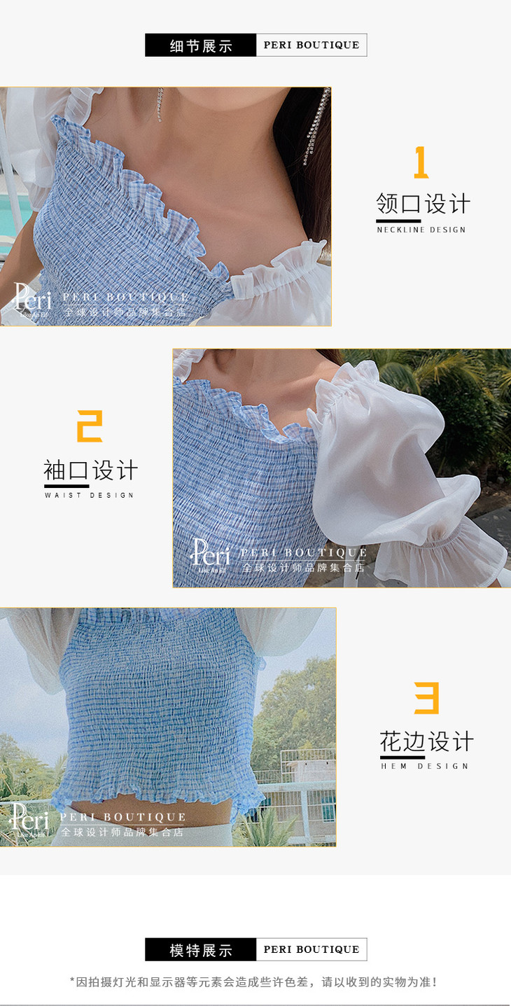 【样品清仓】 Laria Collection法式拼色格纹花边泡泡袖(不支持退换)[福利品]