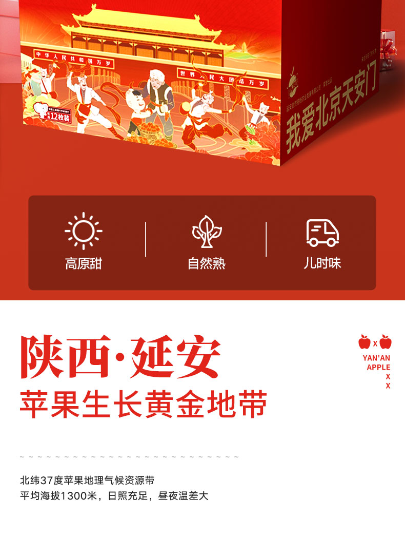 天安门联名款·延安苹果80-85精品12枚手提箱装
