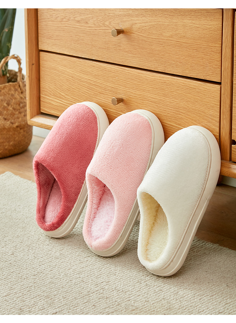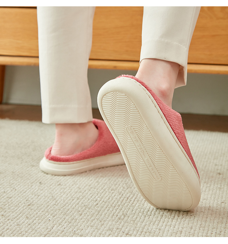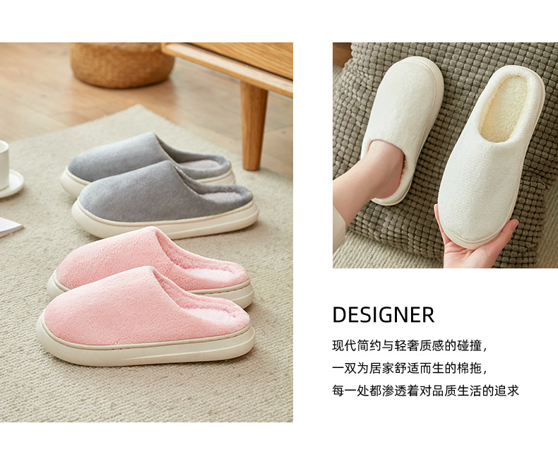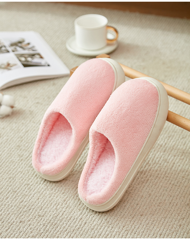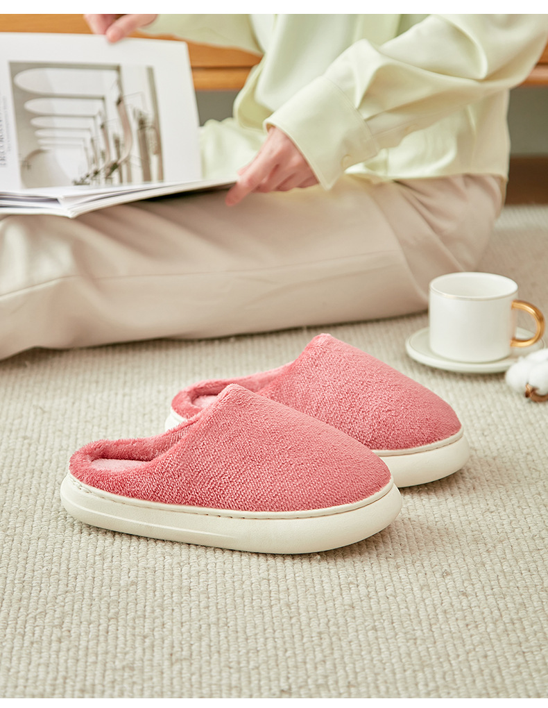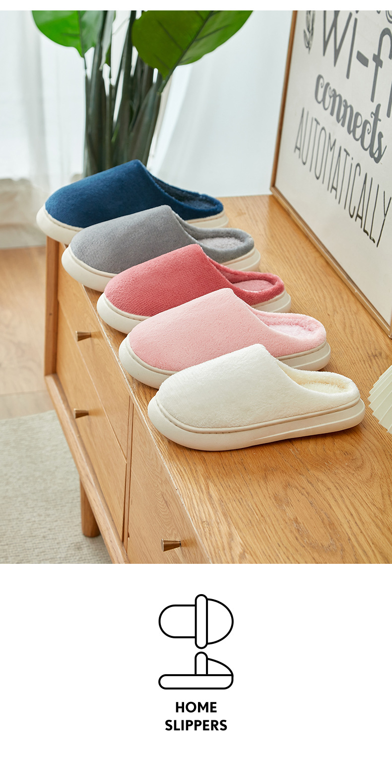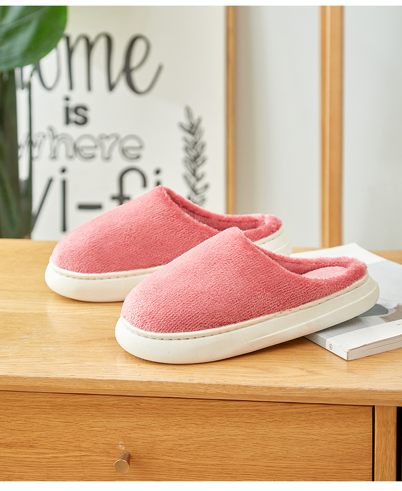 「五色可选!法兰绒材质」厚底冬季纯色情侣法兰绒棉拖鞋 家居室内保暖舒适月子棉拖 男女拖鞋