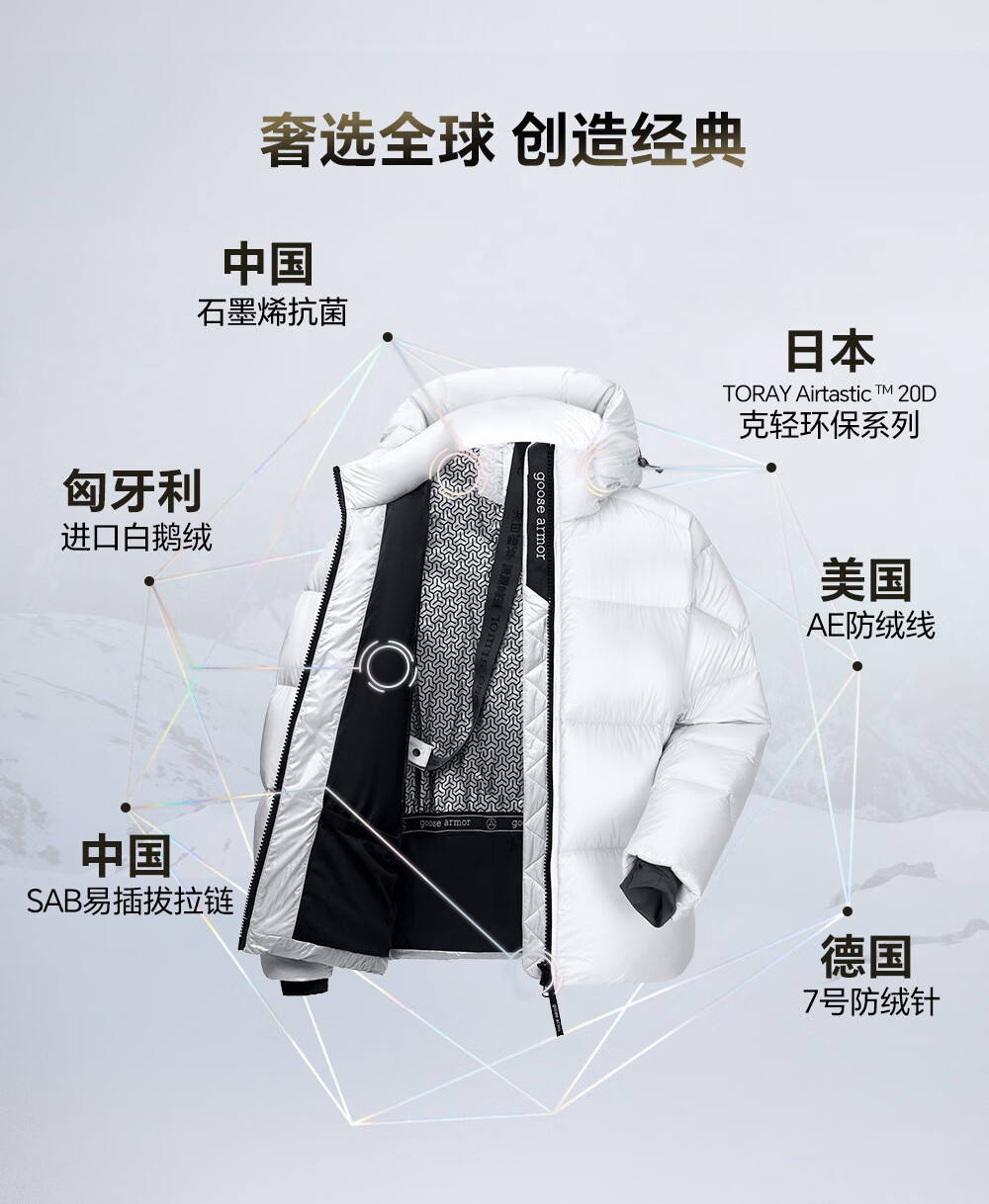 天石鹅铠甲冬季户外白鹅绒羽绒服男士女款可拆卸帽加厚东北严寒G320