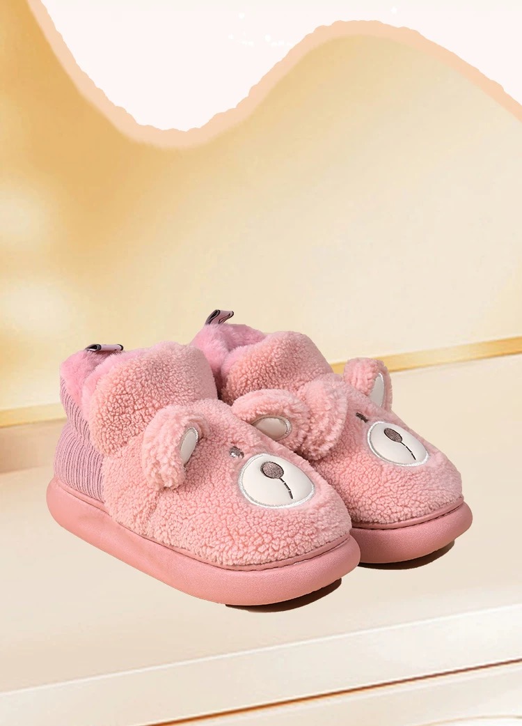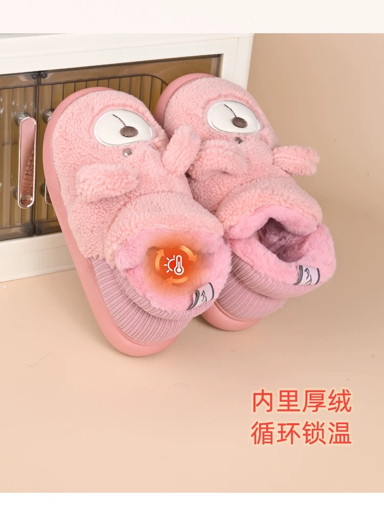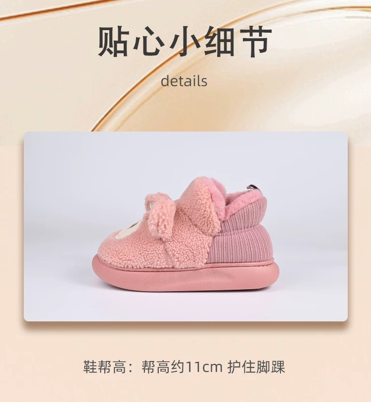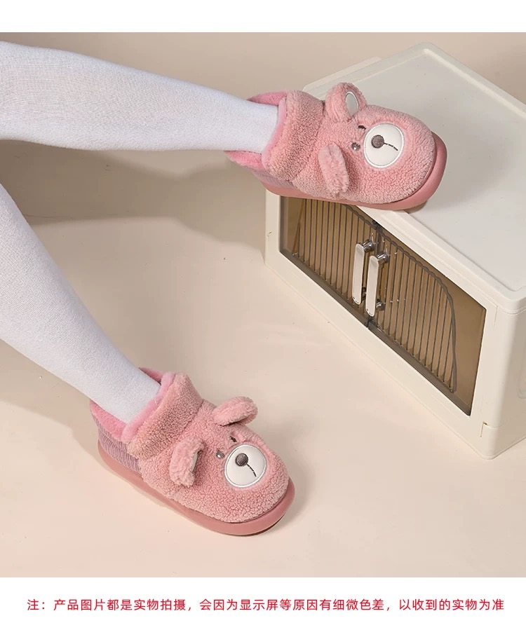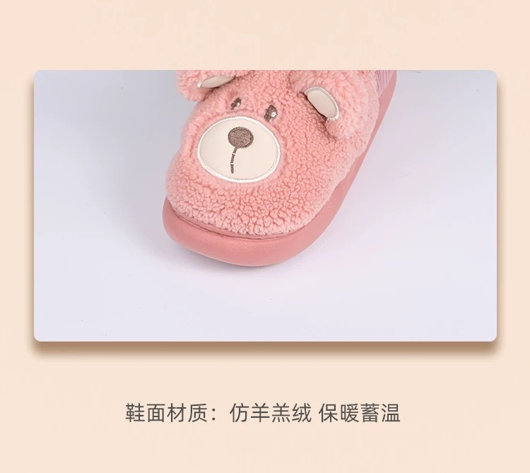 大童/男女冬季学院风棉鞋女童卡通小熊毛绒男童保暖厚底耐磨拖鞋居家男女棉拖鞋【WG24539】