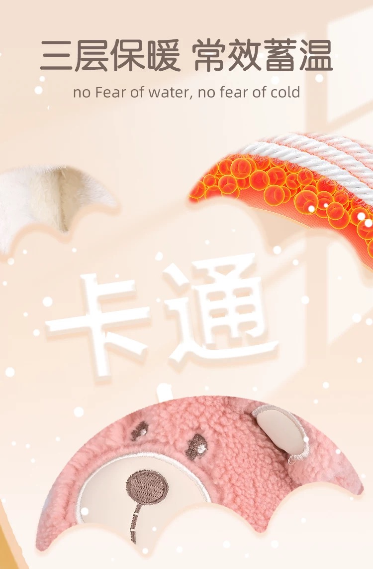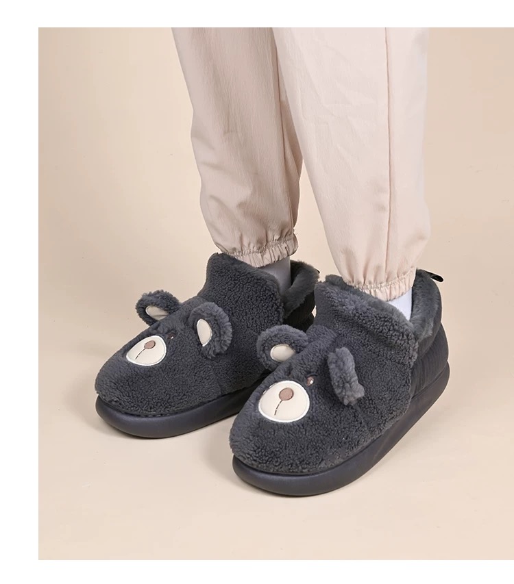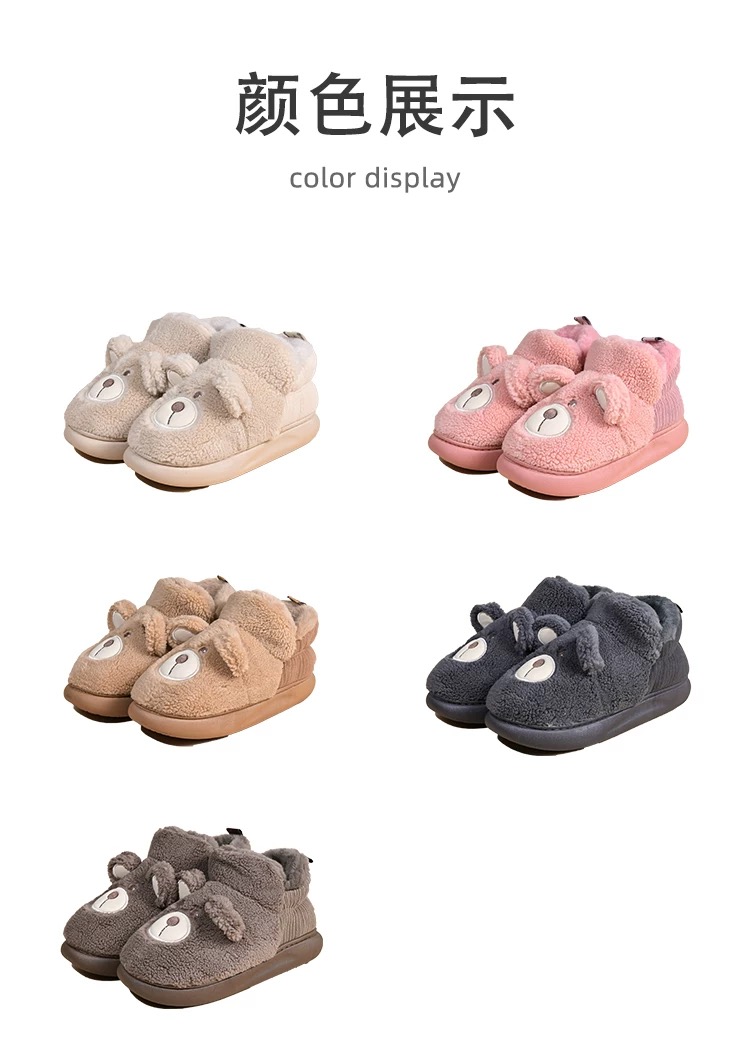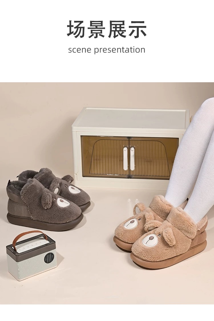 大童/男女冬季学院风棉鞋女童卡通小熊毛绒男童保暖厚底耐磨拖鞋居家男女棉拖鞋【WG24539】