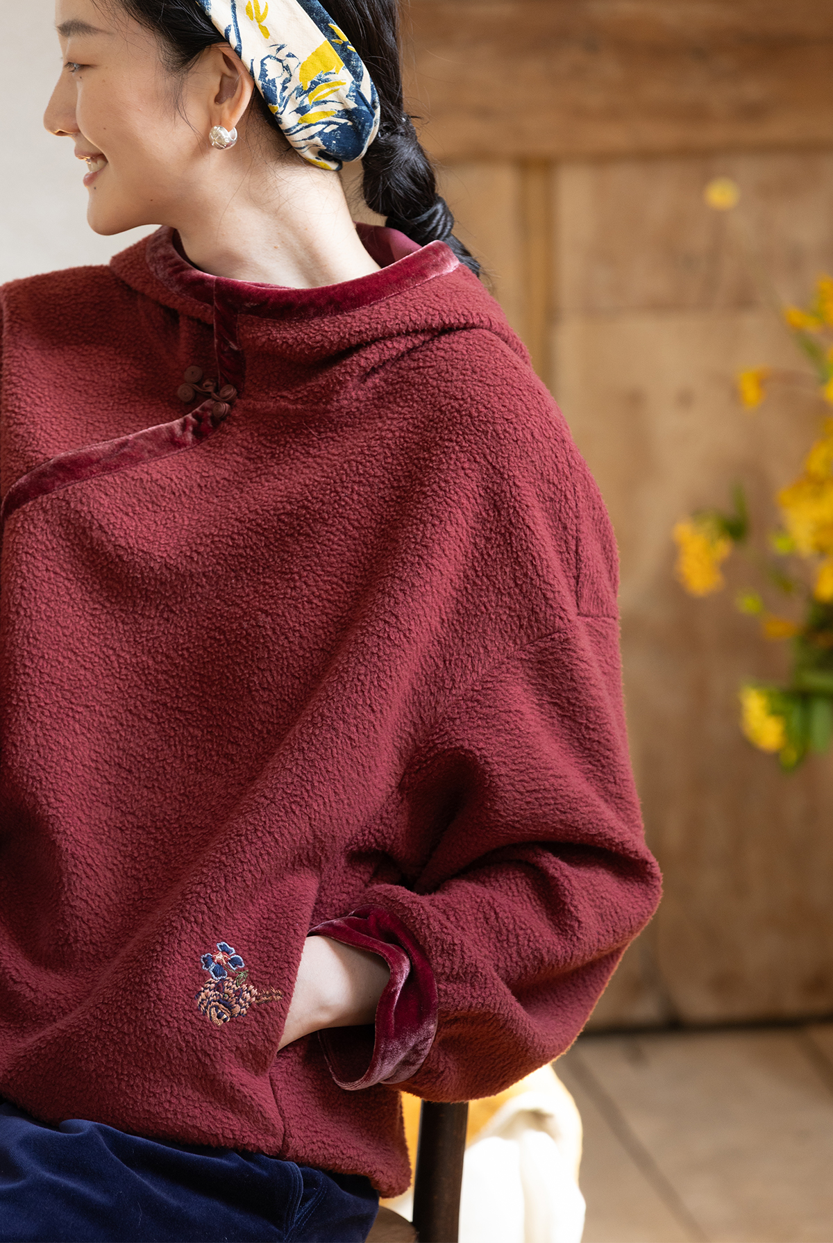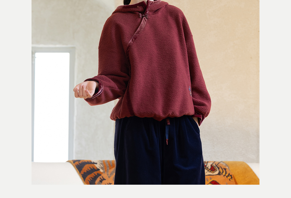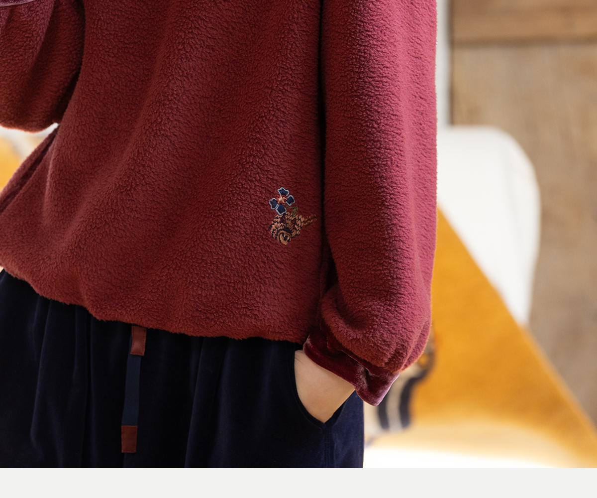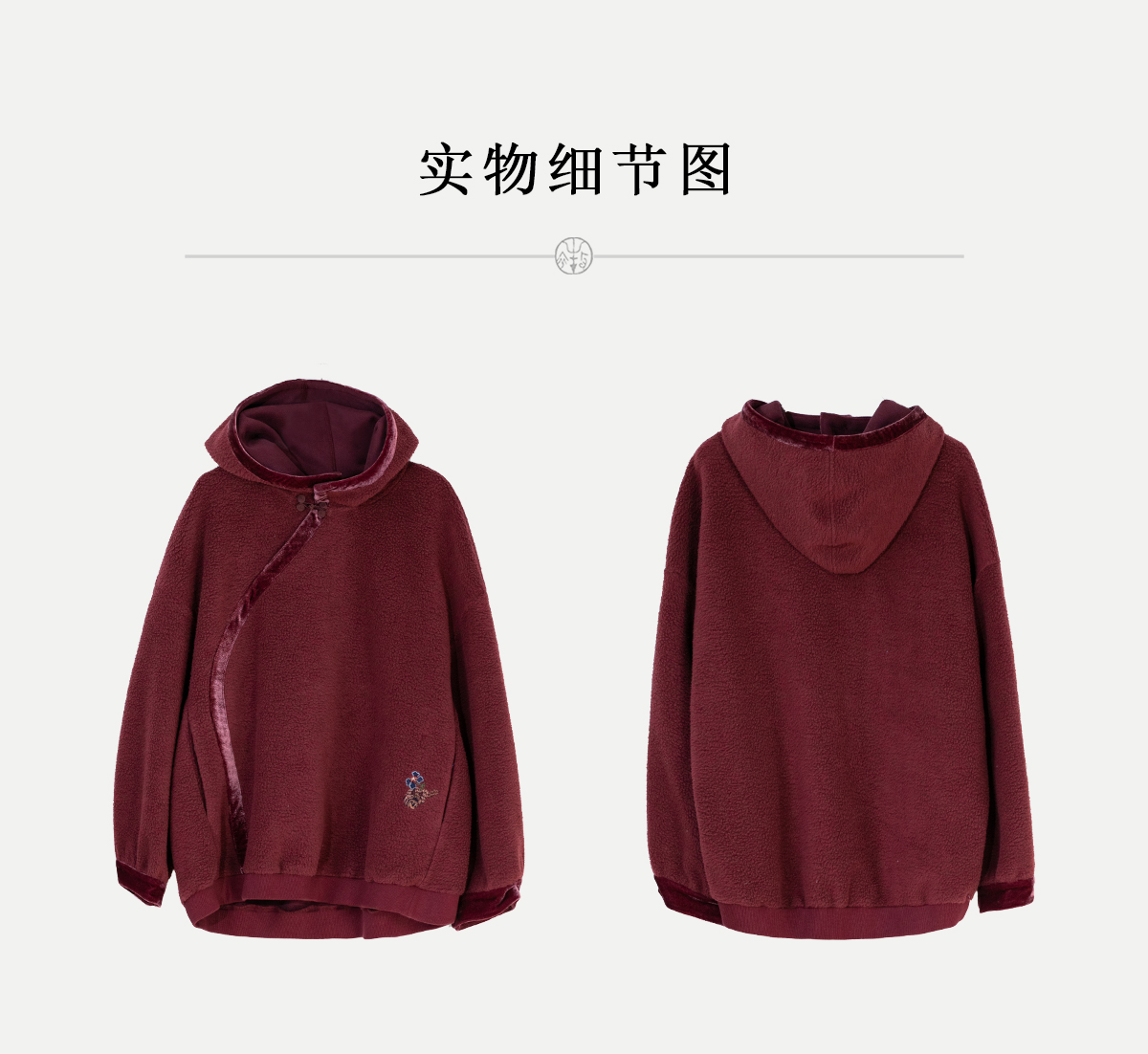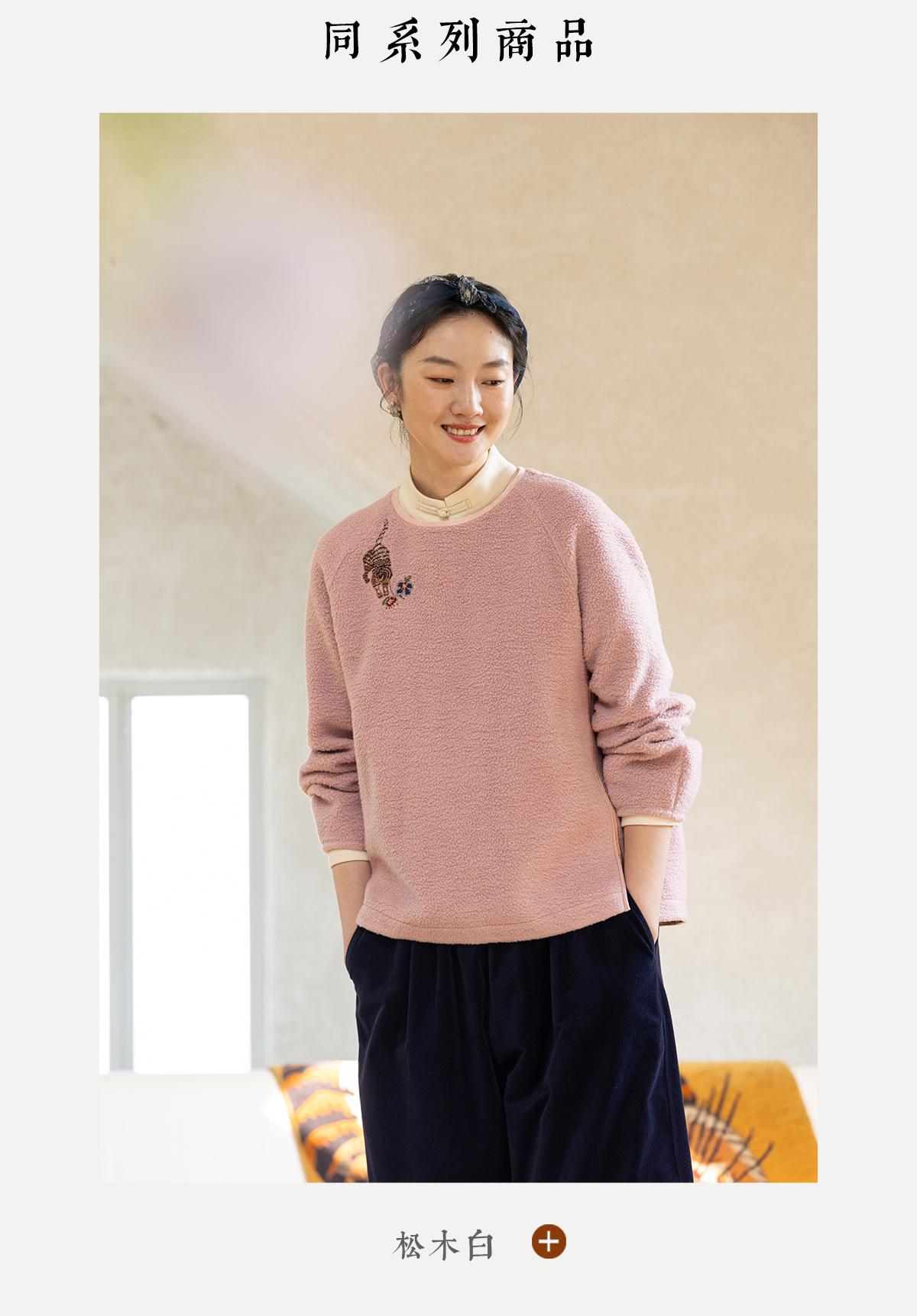 牧衣游原创 老虎与花手工刺绣卫衣舒适保暖厚实红色百搭上衣 萃里