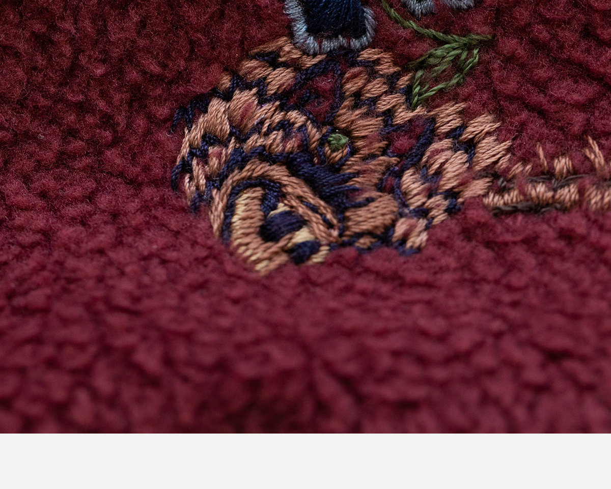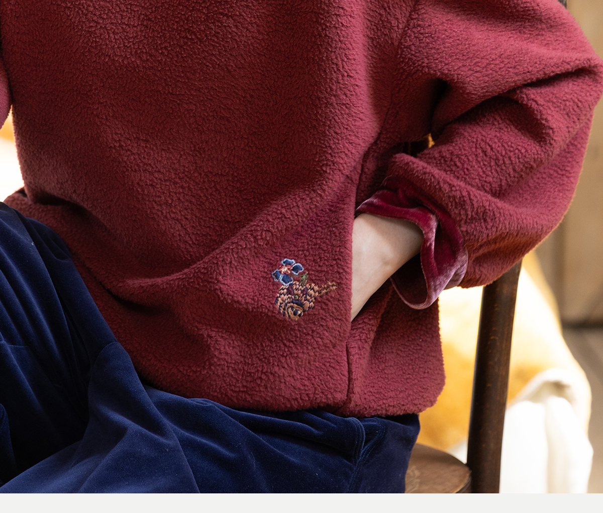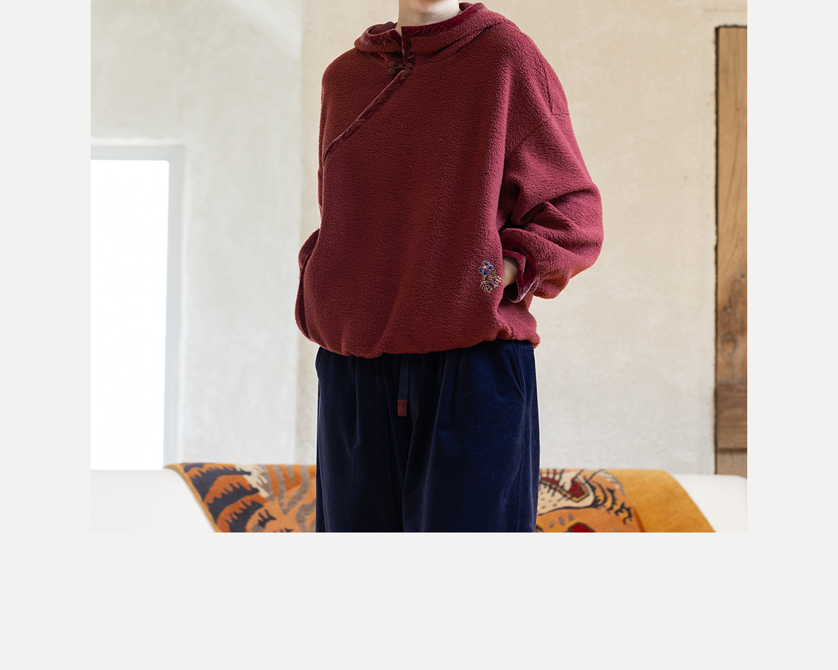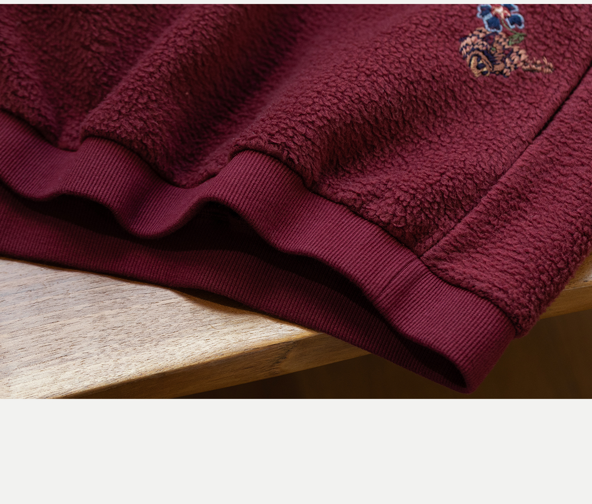 牧衣游原创 老虎与花手工刺绣卫衣舒适保暖厚实红色百搭上衣 萃里