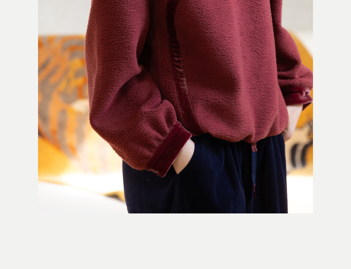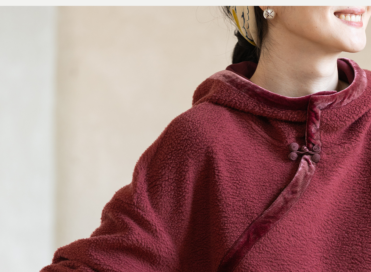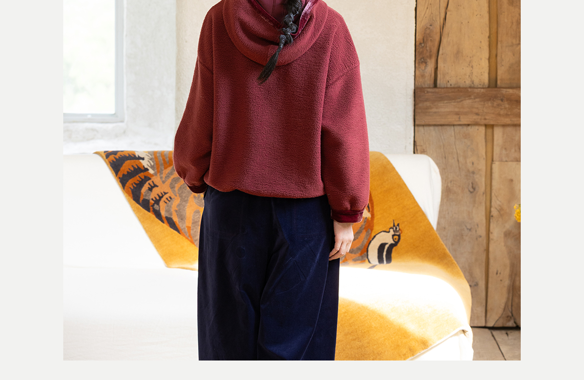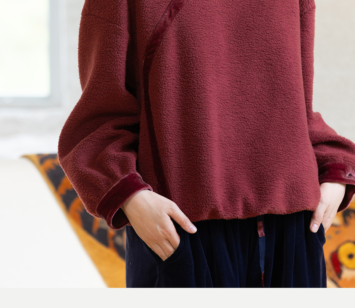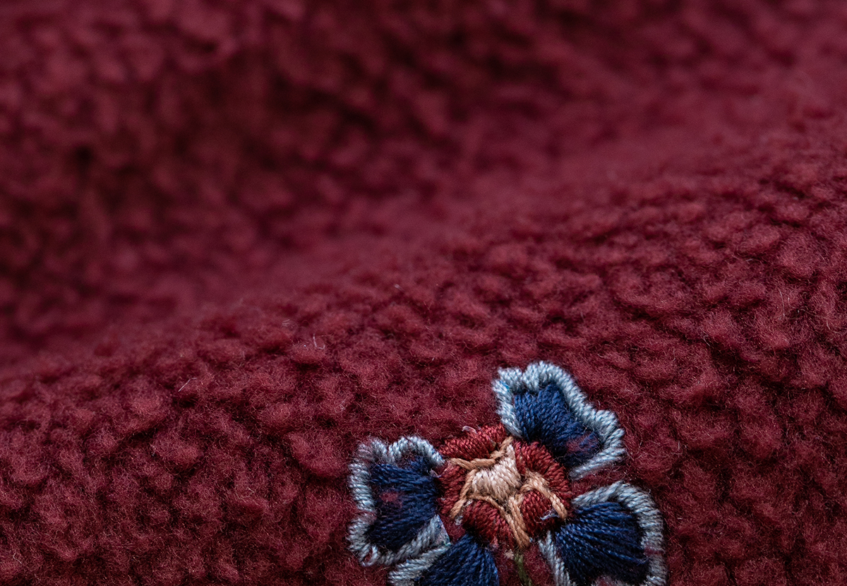 牧衣游原创 老虎与花手工刺绣卫衣舒适保暖厚实红色百搭上衣 萃里