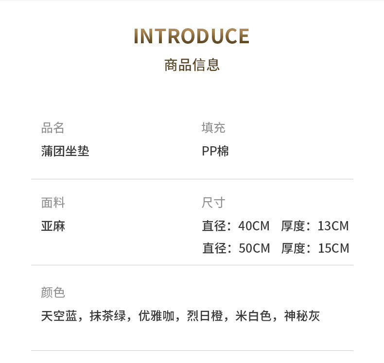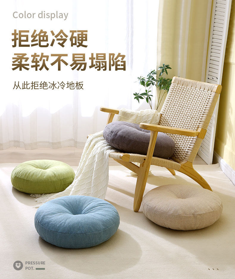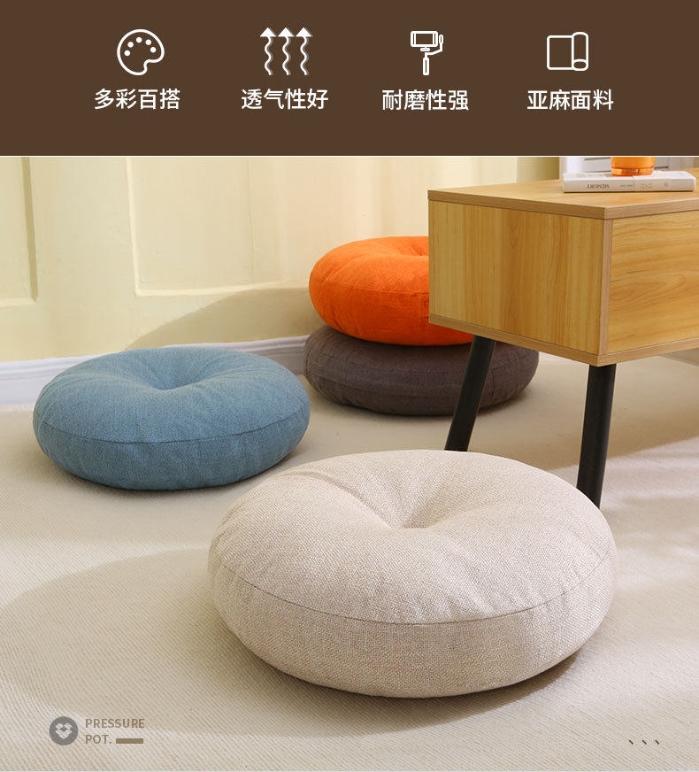 知梦人棉麻蒲团坐垫 加厚圆形日式阳台飘窗懒人地上榻榻米卧室打坐垫