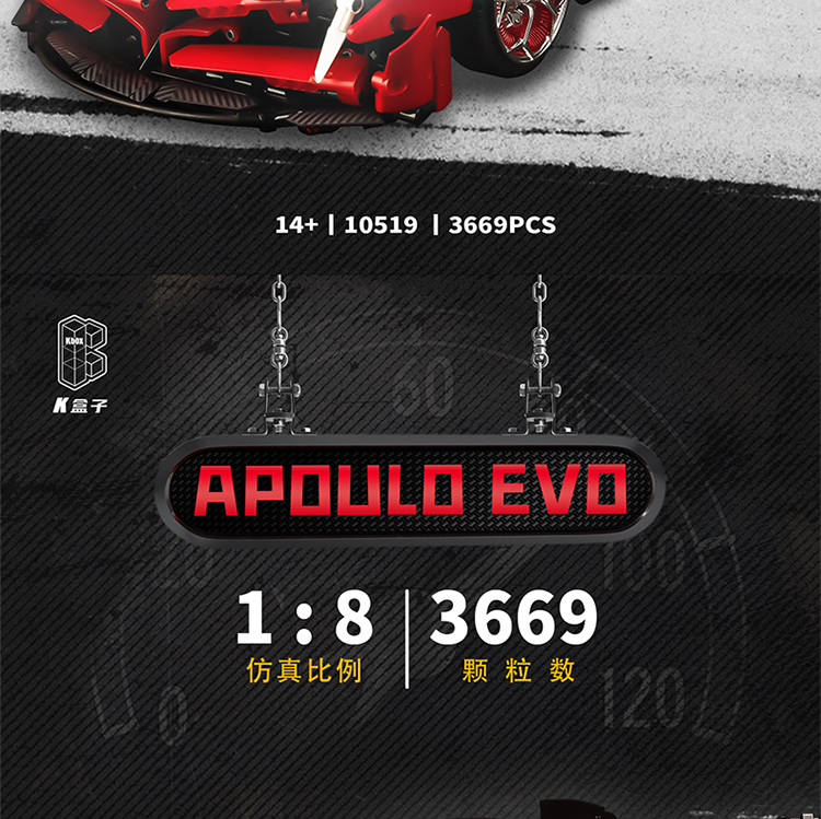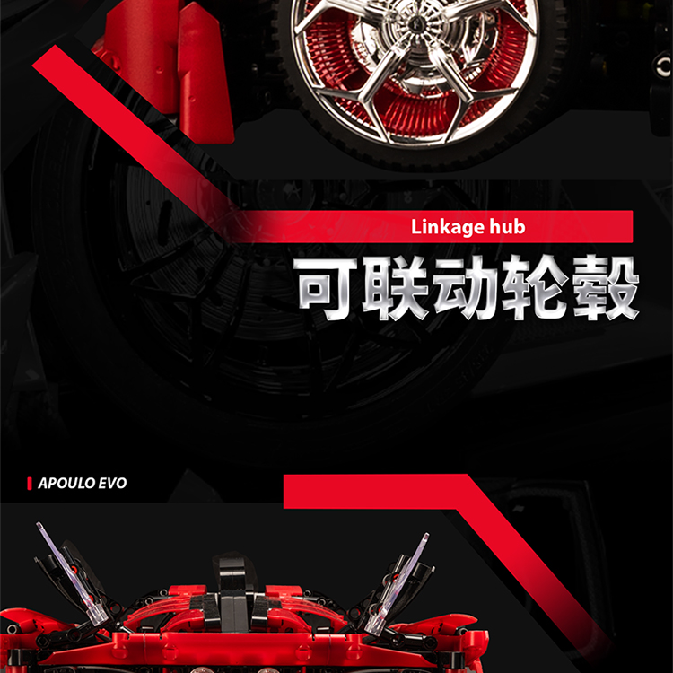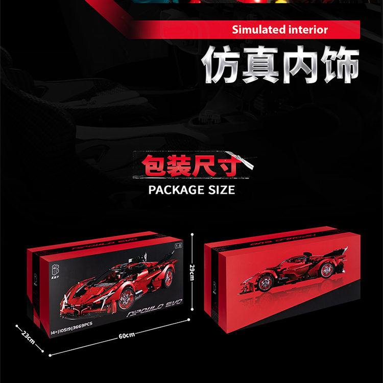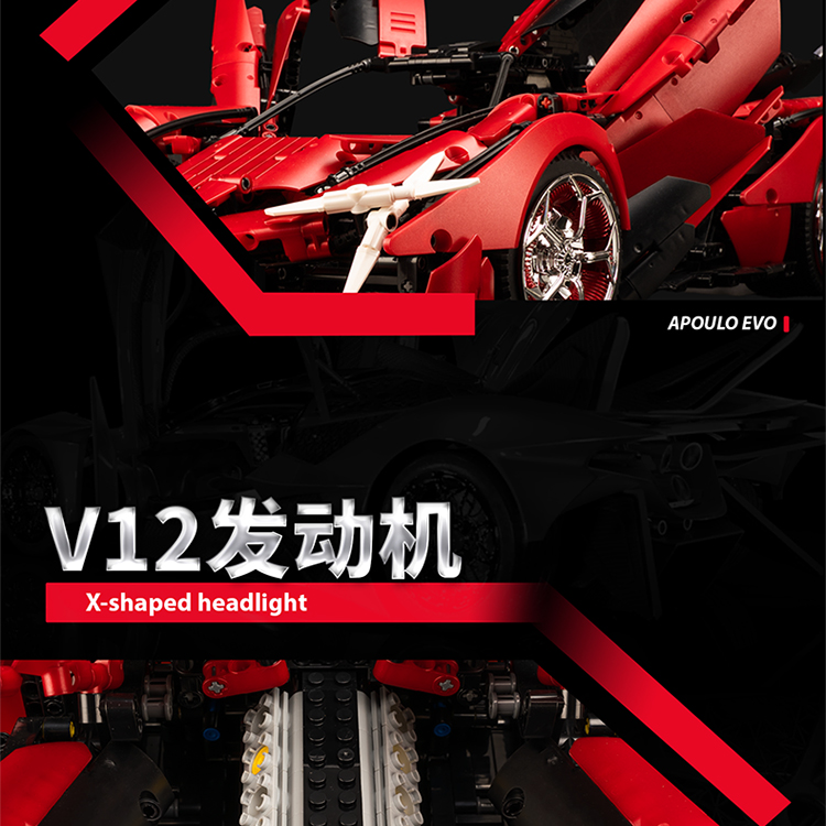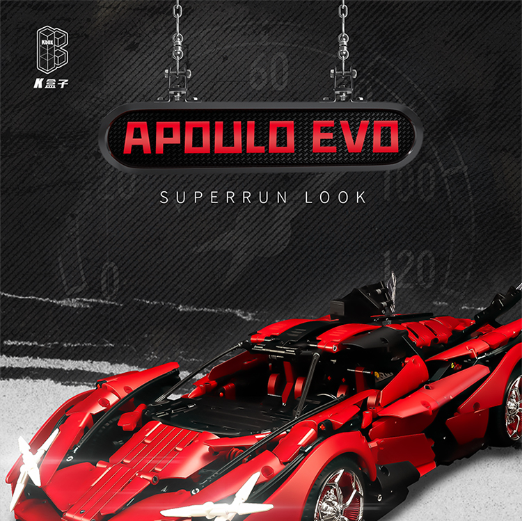 k盒子阿波罗太阳神超级跑车10519高难度成人拼装积木汽车男孩玩具金属红-阿波罗EVO