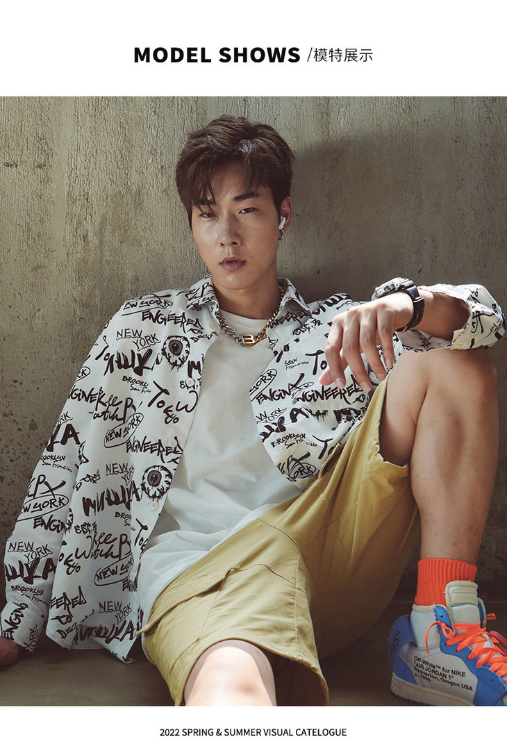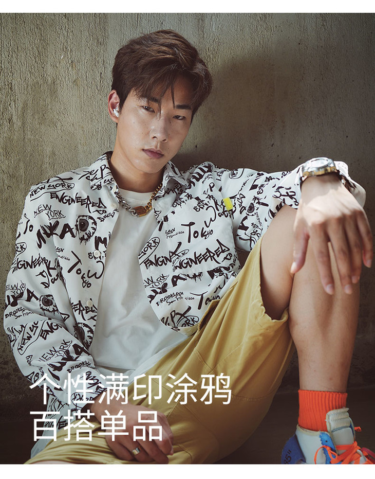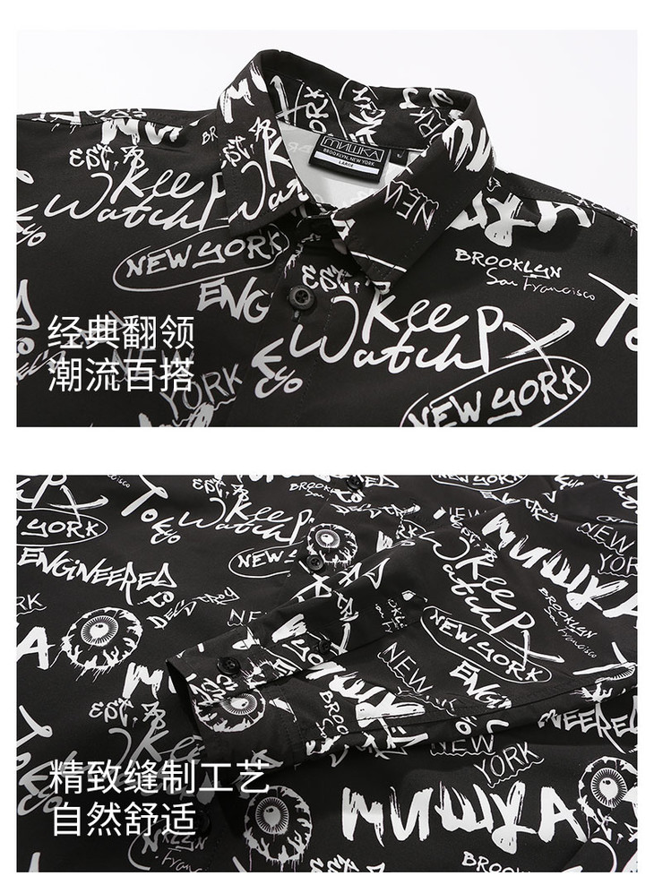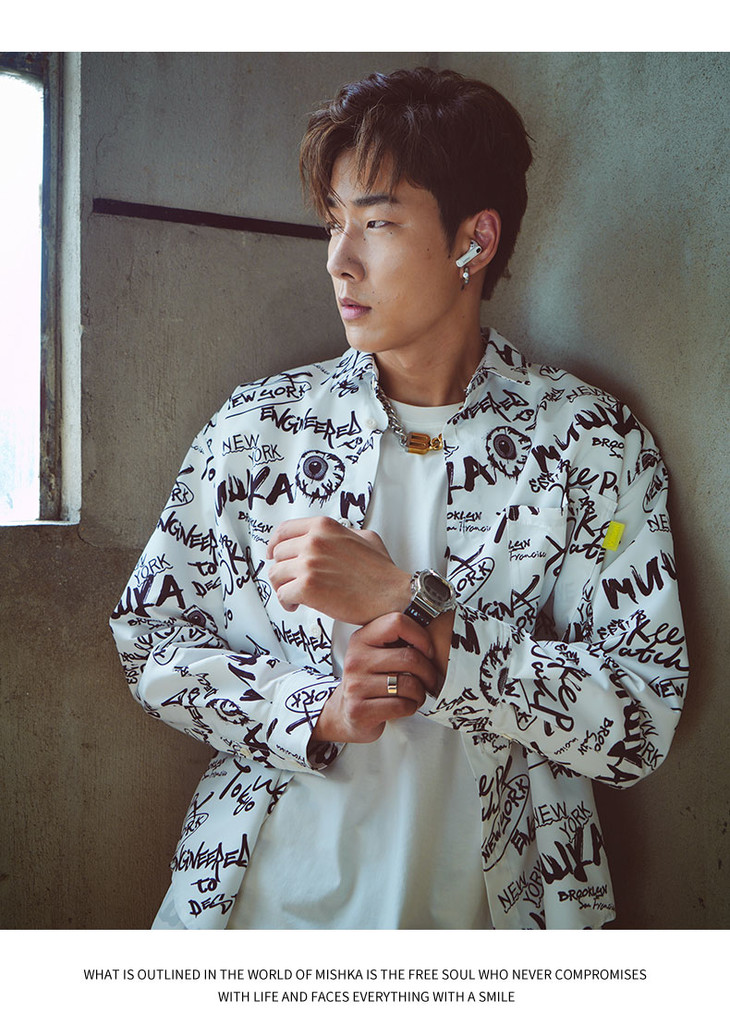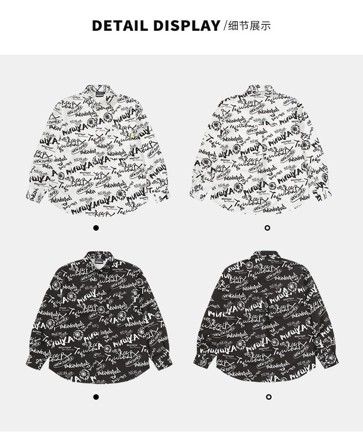 Mishka大眼球潮牌2022春夏新品满印涂鸦眼球宽松长袖衬衫男女同款 M21100219M