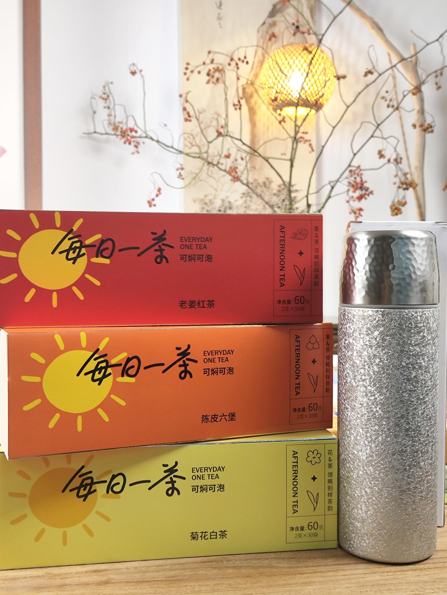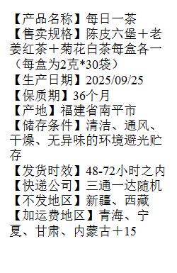 【128元到手90袋】每日一茶 , 陈皮六堡、菊花白茶、老姜红茶,前200名再送一个价值128元的覆钛保温杯(480ml)【G】