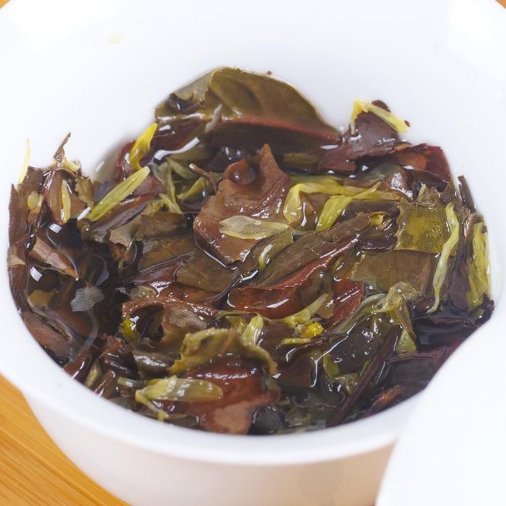 老白茶的茶汤醇厚饱满,口感顺滑。白菊的加入,为醇厚的茶汤注入了一丝清爽的活力。它带来的清润感,能让茶汤在醇和之余更显清透,感觉格外舒爽、滋润。