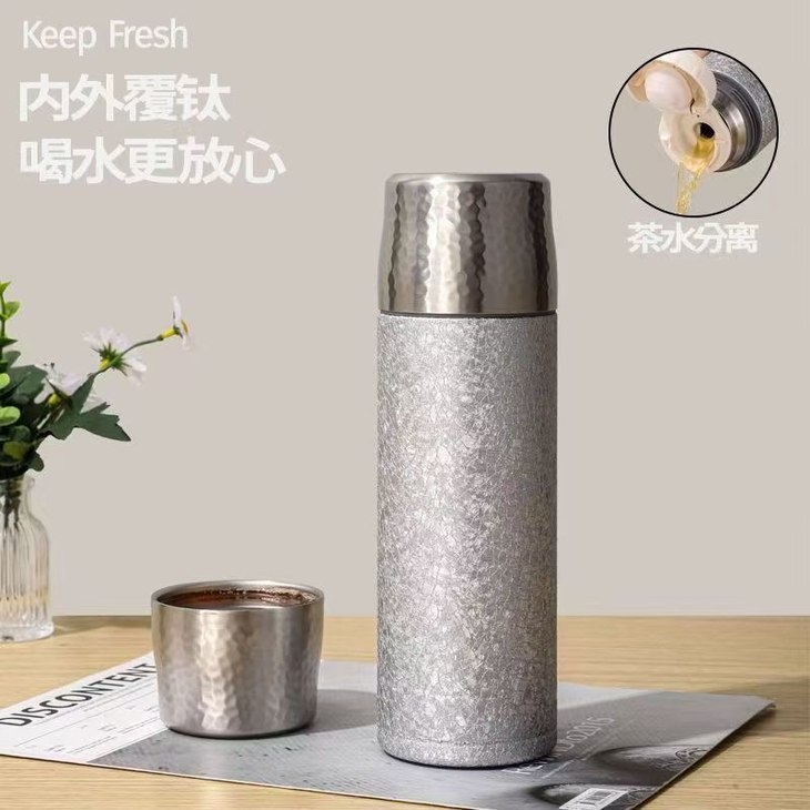 用钛做的保温杯,轻便耐摔;加上钛本身不是重金属,所以钛杯装热水没有不锈钢的铁腥味;