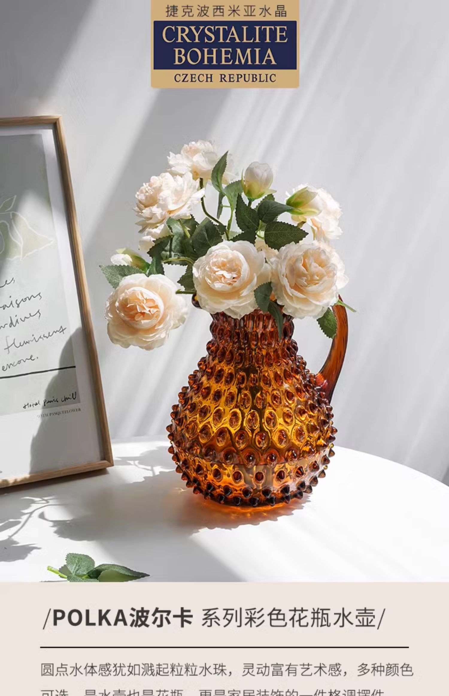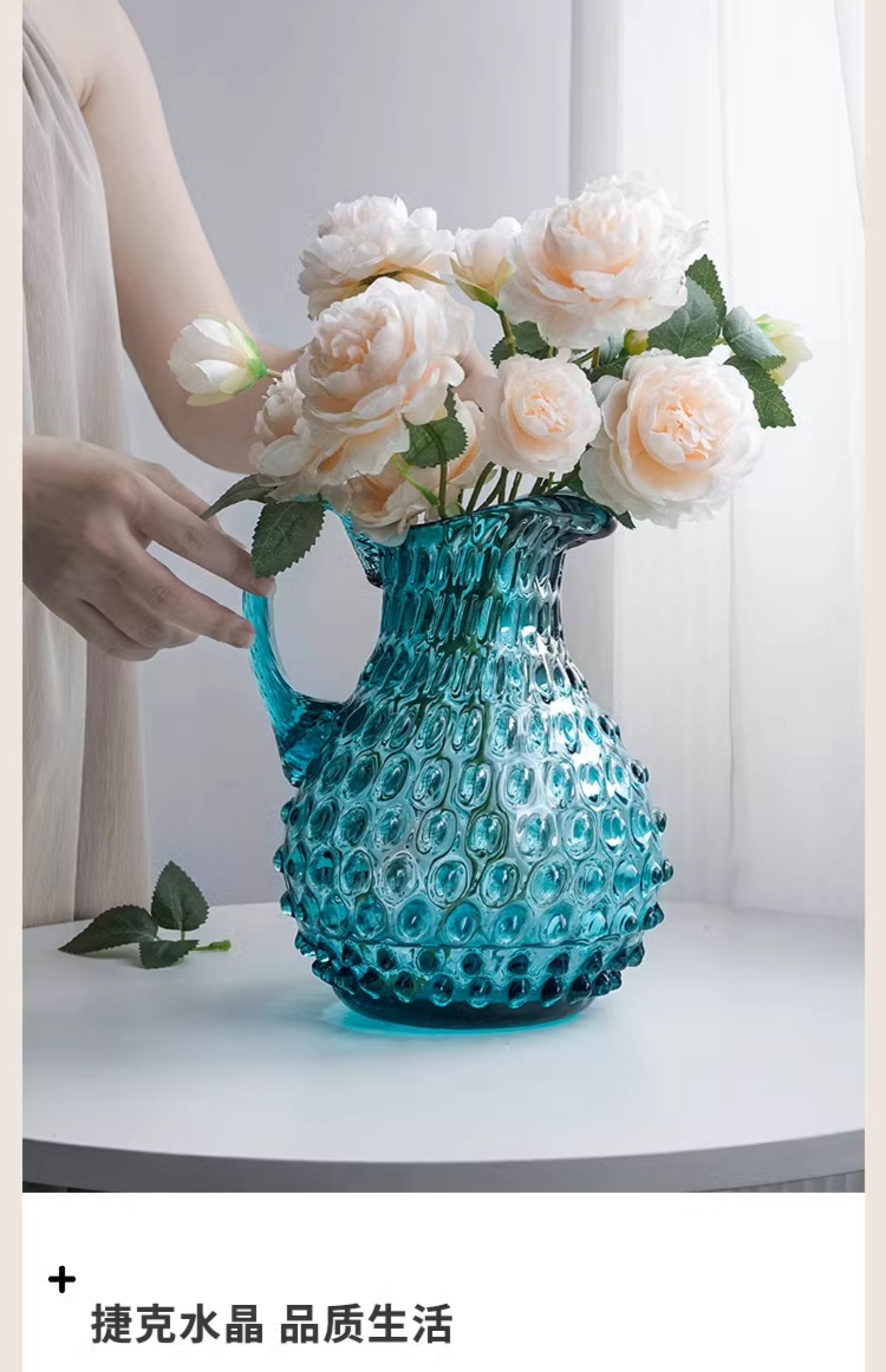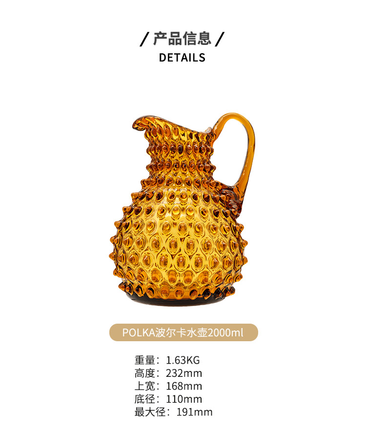 【特惠6折】捷克BOHEMIA原装进口水晶玻璃手工彩色冷水壶花瓶水珠纹创意高档波西米亚手工水晶花瓶2L