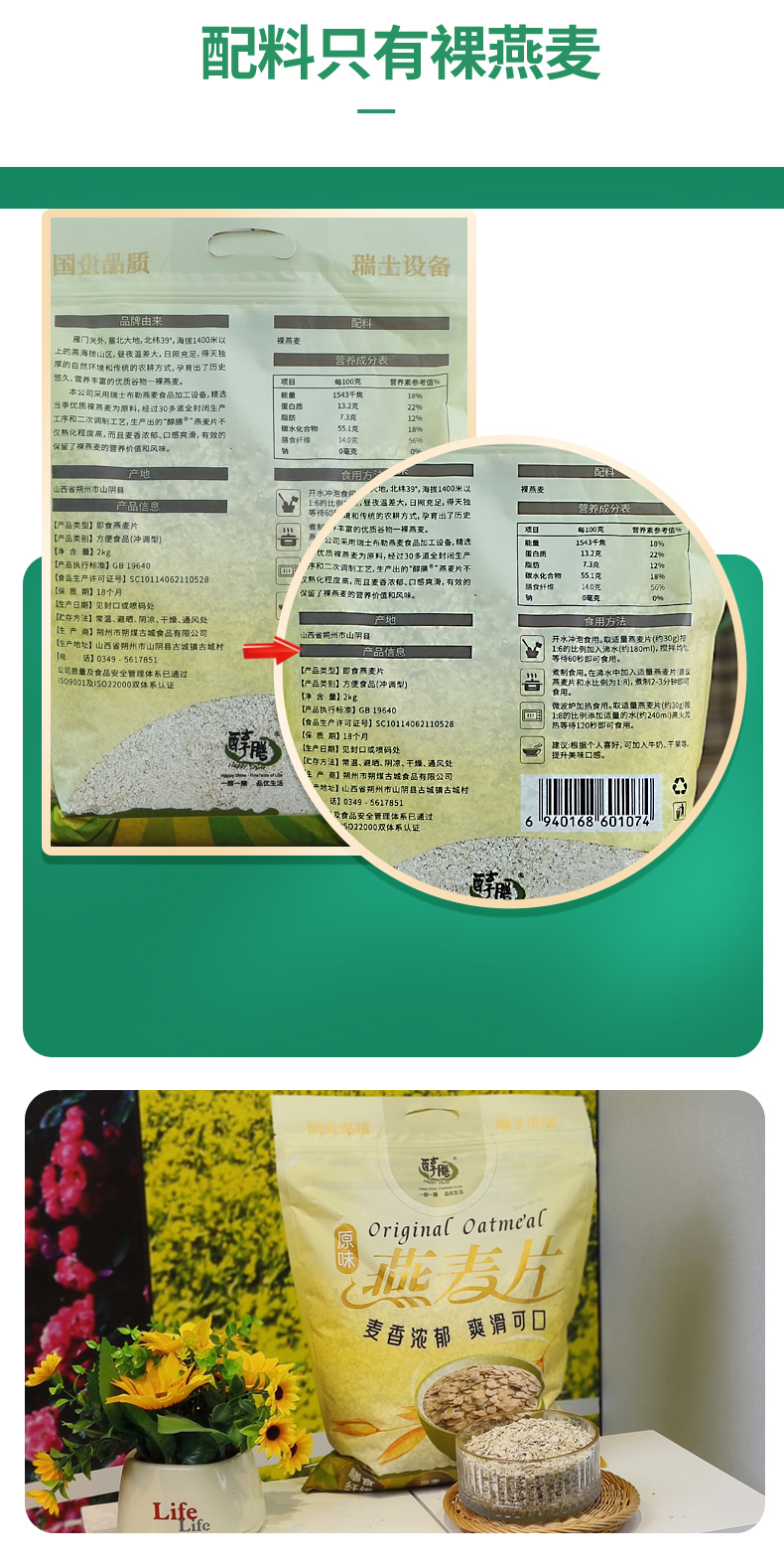 【醇膳】原味燕麦片2kg/1包,晋能控股旗下国货品牌即冲即食全谷物