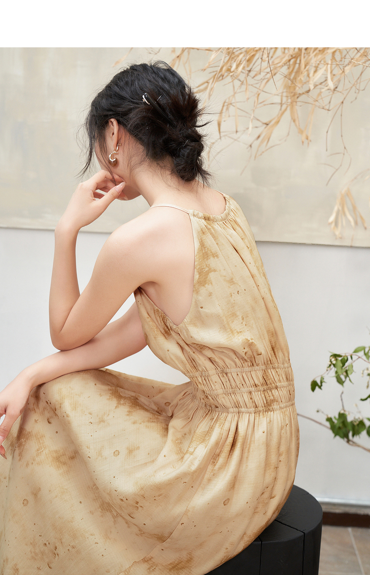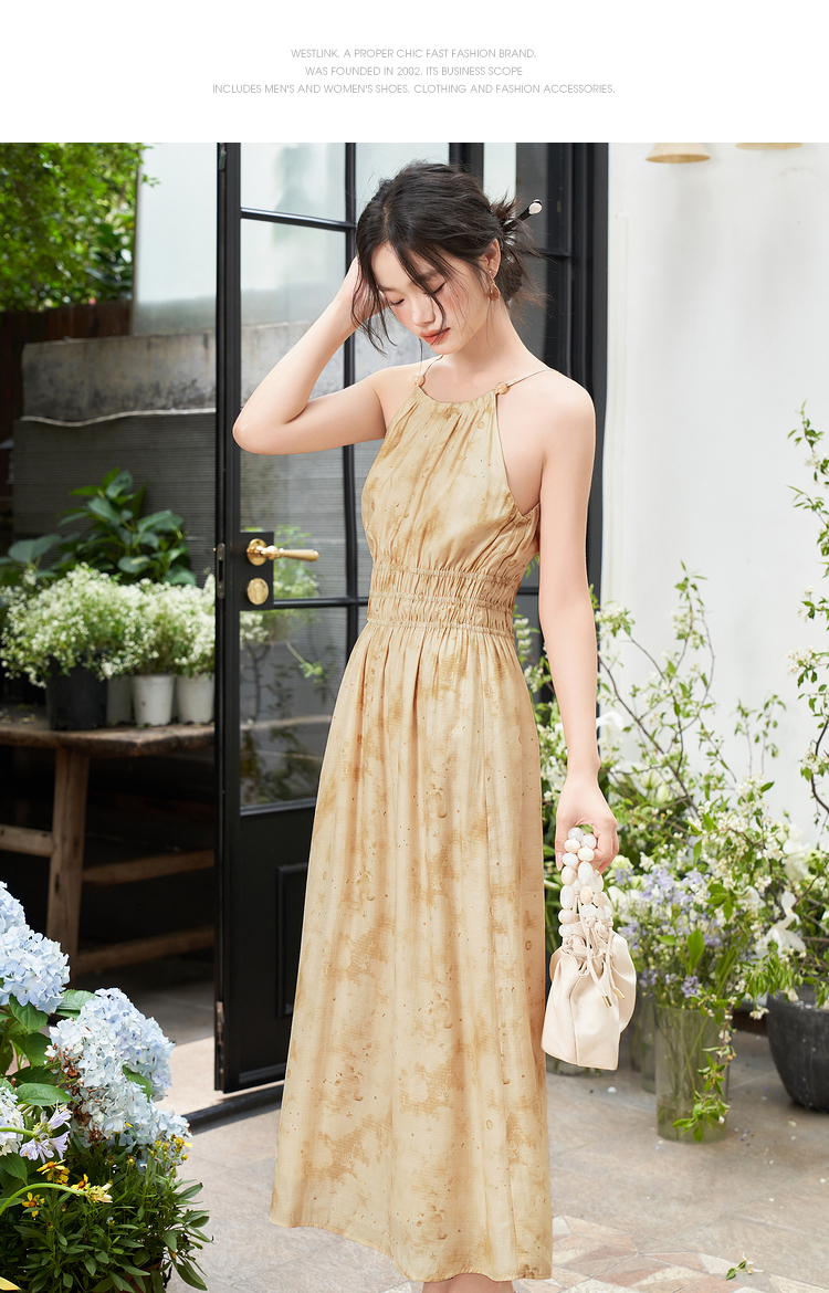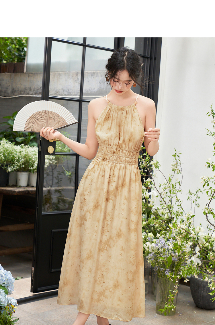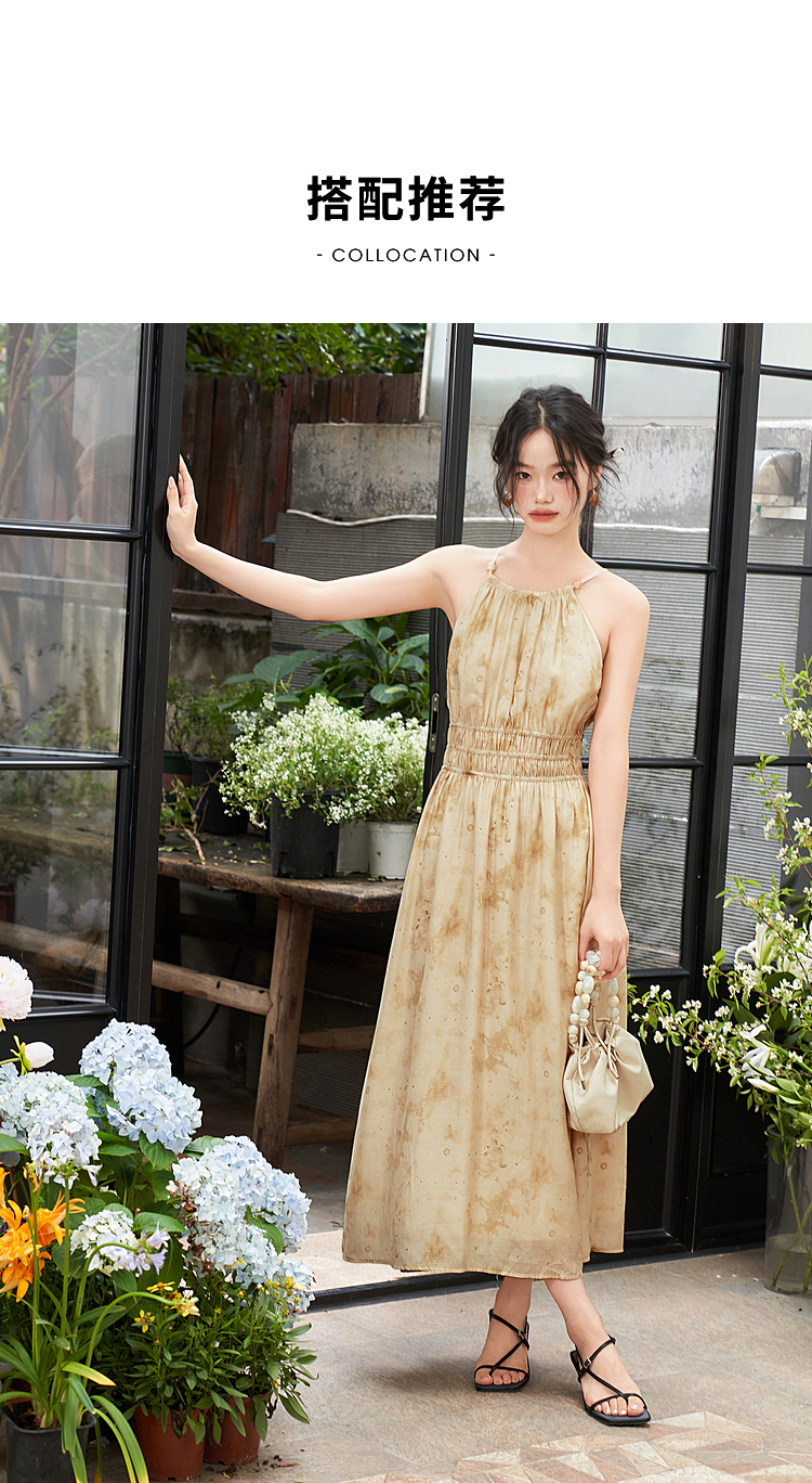 大气典雅挂脖晕染连衣裙女夏季大裙摆飘逸浪漫连衣裙V1841643