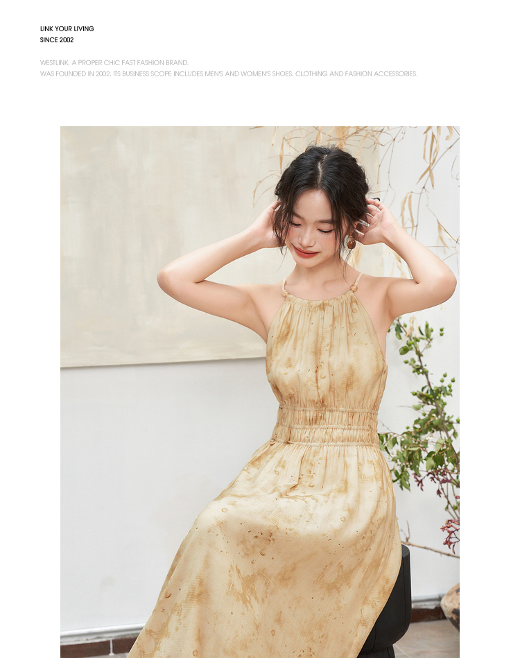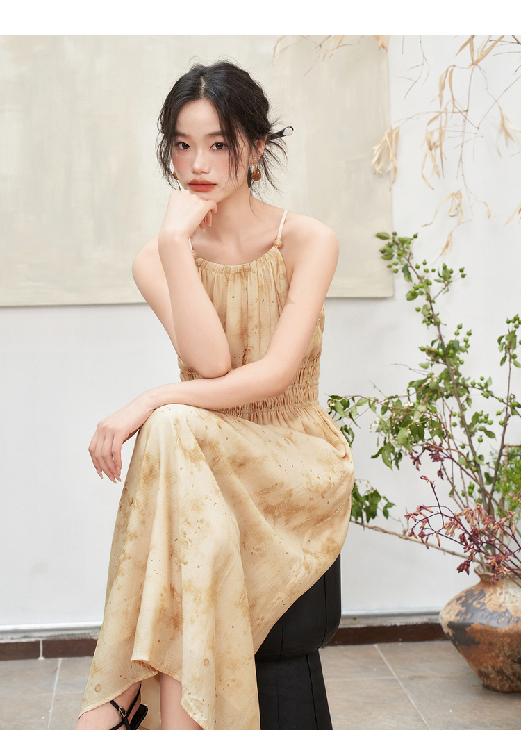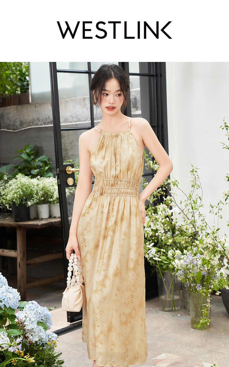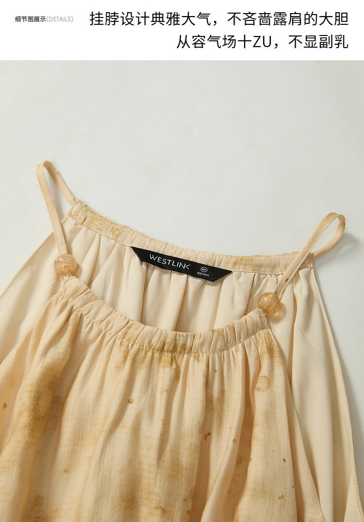 大气典雅挂脖晕染连衣裙女夏季大裙摆飘逸浪漫连衣裙V1841643