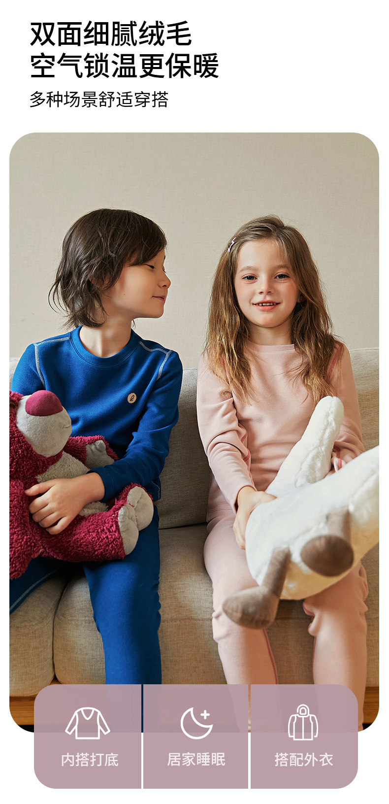儿童秋冬德绒套装 男童女童家居服睡衣 秋衣秋裤保暖内衣宝保暖款