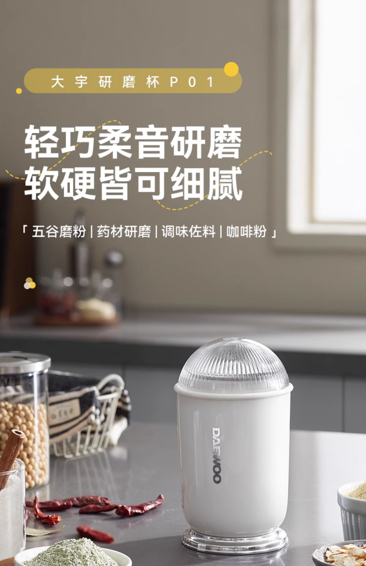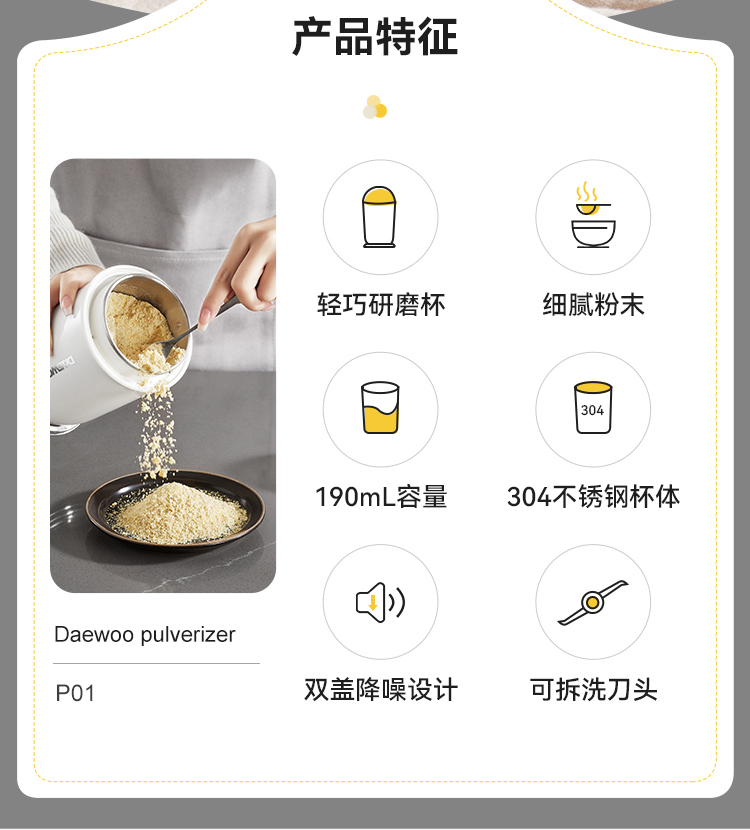 【韩国大宇迷你研磨机】磨粉机家用超细腻小型五谷杂粮打粉机中药粉碎机研磨杯