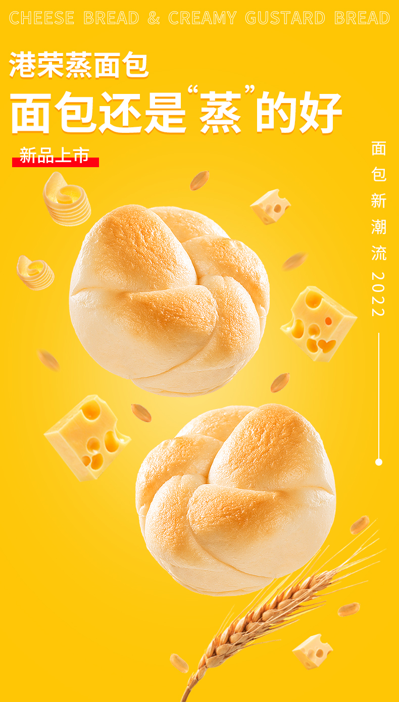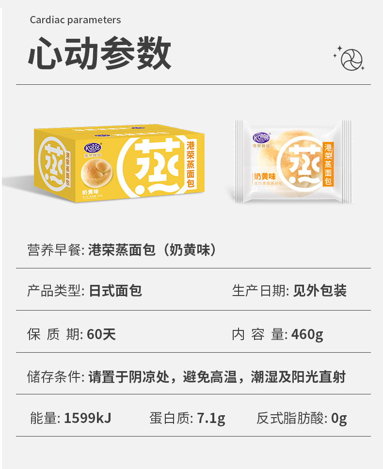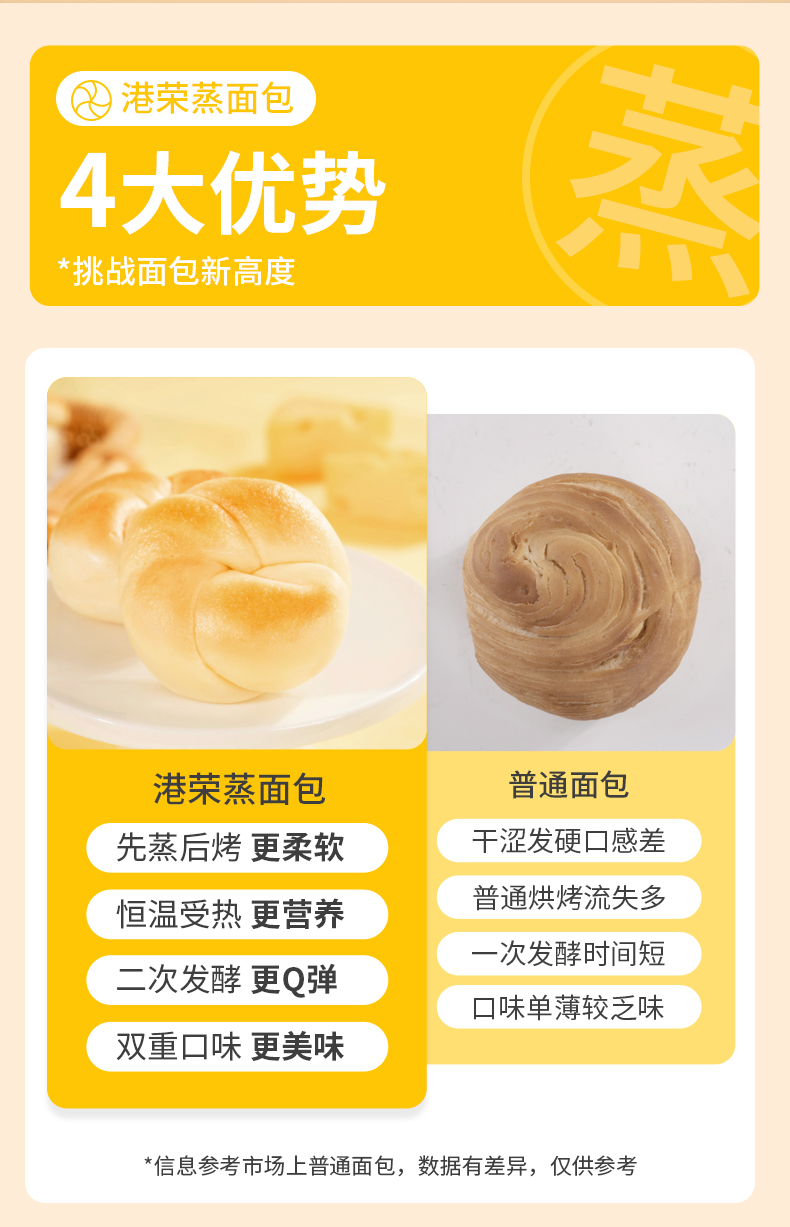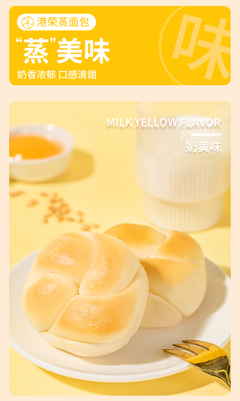【自营】港荣蒸面包 奶黄味460g